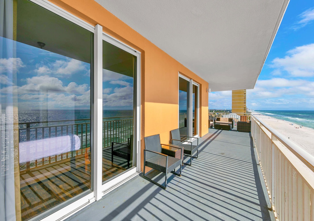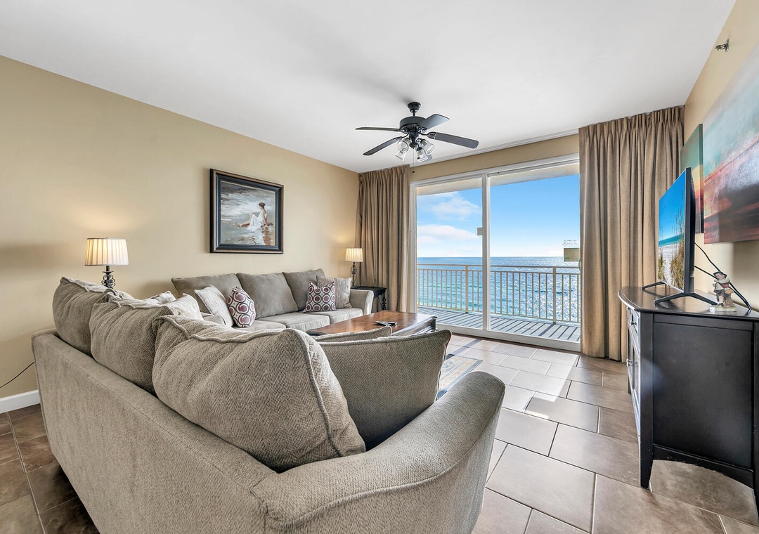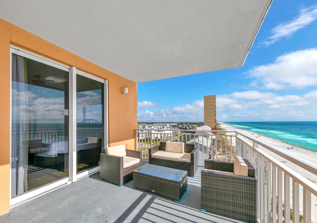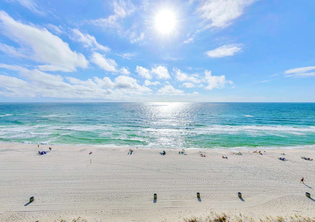 Wake up each morning to majestic views of the Gulf of Mexico from this 2-bedroom 2-bathroom beachfront condo Splash 507E! This stunning condo has a spacious corner balcony featuring miles of Gulf Views from your living room, kitchen, and BOTH bedrooms! There are two king bed Gulf Front master bedrooms, a twin bunk bed in the hallway alcove, and a queen sleeper sofa in the living room, sleeping up to 8 guests comfortably. Take advantage of the full kitchen's ample counter space and all-new appliances to prepare delicious meals for everyone to enjoy at the dining table and the bar. Check out the extensive resort amenities and create vacation memories of a lifetime at Splash 507E!