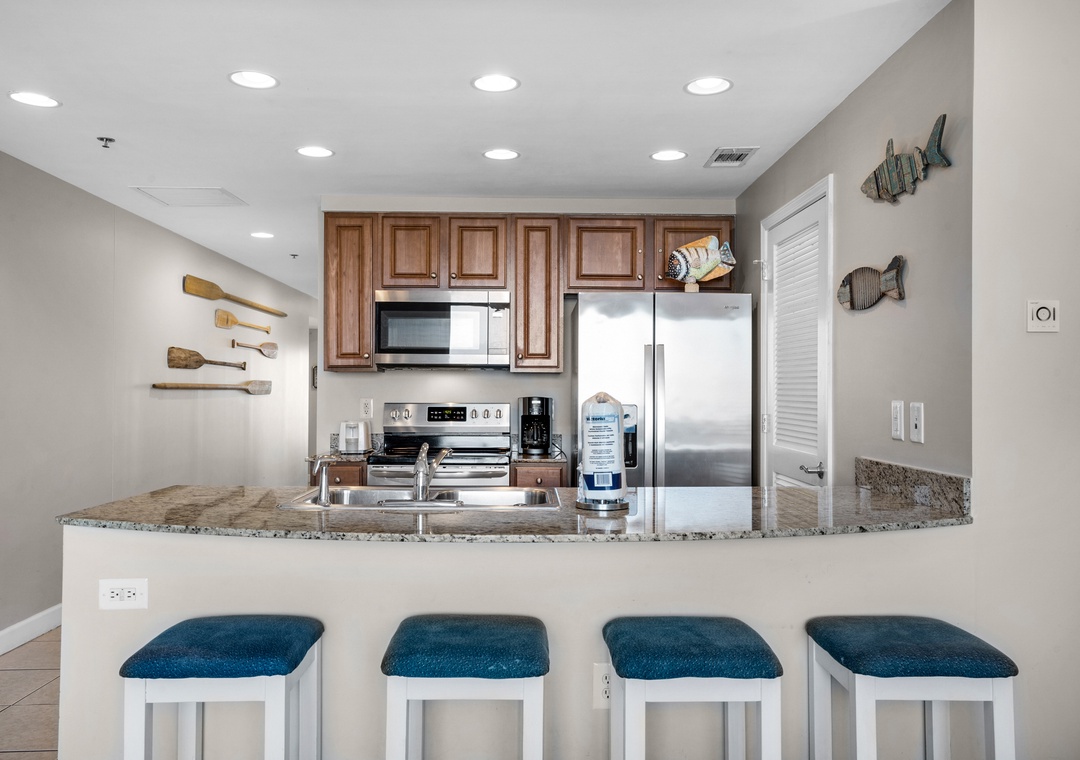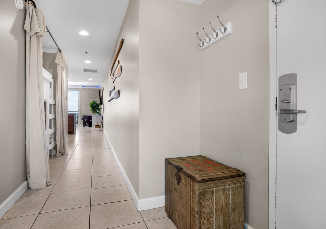 Condo is right off the elevator. We never had to wait for a elevator more than 5 minutes during busy season. The curtain over the bunk bed area was wonderful. My daughter slept so good. There is led lights in the living you can change color, my 14 yr old daughter loved that. The arcade game was mine & my husband's favorite. We enjoyed the sand toys and buckets and beach chairs that was in the condo. The host checked with us everyday to see if there was anything we needed. The wifi and tv with the streaming apps was great. We didn't have to buy any ice we used the ice maker in the fridge. We have no complaints and will try to get this same condo next year when we go back.- Reviewed On: 6/29/2024