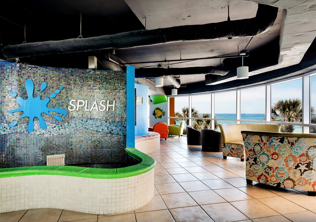 Splash Resort in Panama City Beach is a fun-filled, gulf-front condominium that is perfect for families. Splash has 2 towers with 21 floors, decked out in bright colors and splashy designs! There’s a seasonally heated covered pool, a seasonally heated outdoor pool, a hot tub and a lazy river pool! You’ll also find a kid’s mini-water park complete with water slides, water cannons, and bucketloads of even more water! There’s even a toddler friendly splash pad. Enjoy the convenience of Alvin's Island Beach and Convenience Store onsite and the covered parking garage. There’s also a fitness room overlooking the Gulf, and community BBQ grills. From the dive-in theater to the poolside bar and grill (both are seasonal), Splash has everything for your fun-filled beach vacation!
