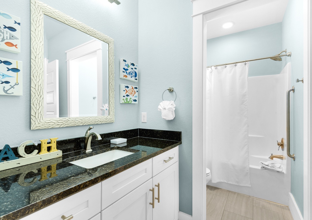 This was our first visit out to Florida and we all agreed that The Fun-In-The-Sun House was a superbly appointed vacation home! It was very clean and very comfortable for our family of 7, including a 4 year old. We loved that each of the 3 upstairs bedrooms had their own bathroom and the main floor bedroom had a bathroom just across the hall, which was very convenient. And all but the kid's room had a flat screen television. The plethora of beach equipment was far beyond expectations and it was a very easy 7 minute walk to the Miami Street Beach Entrance to Miramar Beach, as advertised. The kitchen was beautiful and very well stocked. We especially enjoyed the belgium waffle maker. We also loved the close proximity to Harborwalk Village, Destin Commons, Silver Sands Premium Outlets, Baytowne Wharf, and tons of fabulous restaurants! We will definitely be back!- Reviewed On: 11/22/2019
