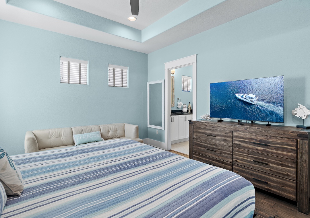 We loved how each bedroom had very comfy beds and walk in closets which were big enough for pack and plays. It was great that the house came with a pack in play as well and high chair. This is a family friendly house. Also it was great that each bedroom had a tv in it. Also that the tv’s had cable and had a Netflix account open on each tv.