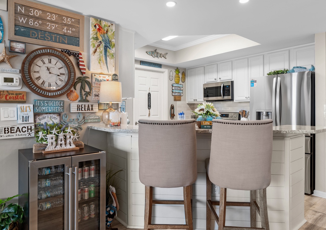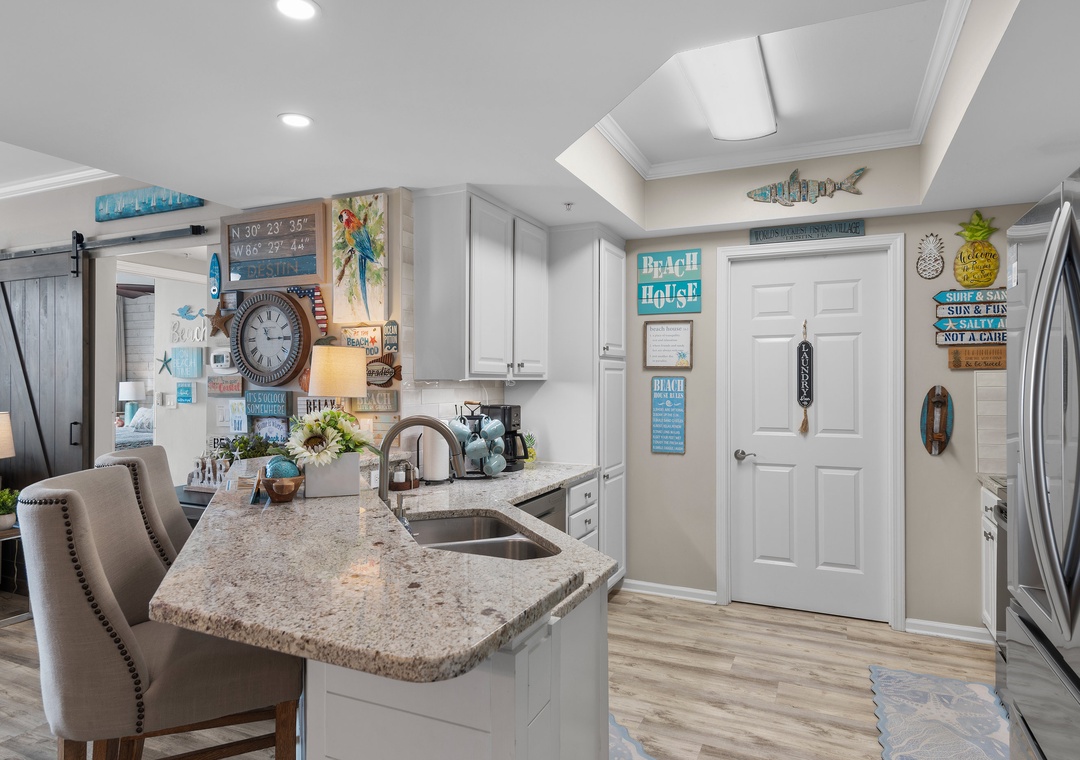 This condo is adorable! Full of natural light with a beautiful view. Nice beach decor. The fridge made me jealous as did the master bath with jetted tub. Excellent outdoor patio. Overall it was perfect for our family of four. The beds were decently comfortable but nothing amazing. Both king size. Pull out couch. Short enough of a walk to the PRIVATE beach (for residents and guests of the property) which was definitely ideal for social distancing. The kitchen was fairly stocked, there was not anything that I wanted that wasn’t there with the EXCEPTION OF salt and pepper and sharp knives. There were knives but they were quite dull. Plenty of nice dishes. The luggage trolley is key for groceries and luggage but we had to ask for them as they are in the garage and not the lobby. Ideally this info would be in the welcome email. Only other complaint is there was NO hand sanitizer stations by elevators, etc. I carry my own so it was ok, but it would be nice if they had some appropriately located. All in all we had a great time and I would stay here again without a doubt. In fact, I didn’t want to leave.- Reviewed On: 7/13/2020