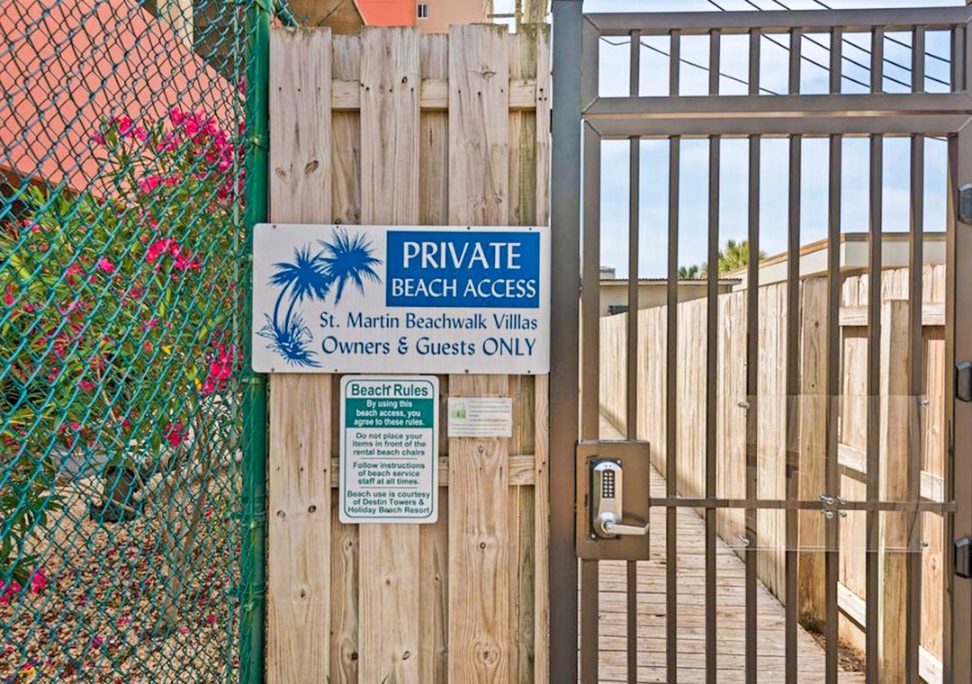 St. Martin Beachwalk Villas has a deeded beach access down your own private walkway. You do not have to cross Highway 98 to get to the sugar white sands and emerald green waters of the Gulf. The 3-story, low rise complex is centrally located in Destin, so you can leave the car parked all week and enjoy the community pool, grilling area, close proximity to Big Kahuna's water park, shopping, restaurants, and more! You can't beat the convenience and affordability of St. Martin Beachwalk Villas! Please note, this complex does not have an elevator.