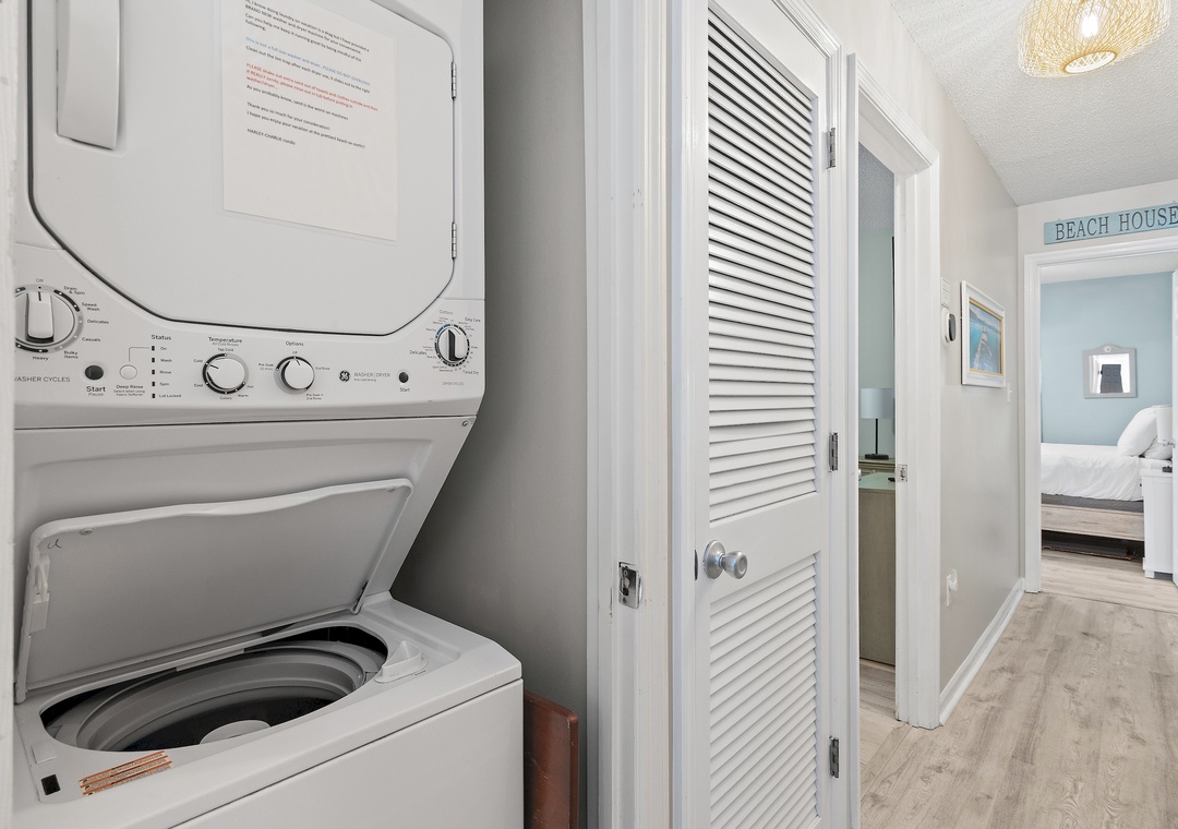 Shannon, we are happy to know that you found this two-bed, two-bath condo to be clean and comfortable. This unit has a new stackable washer & dryer. We appreciate your patience regarding the linens. Thank you for choosing RealJoy.Real Joy staff