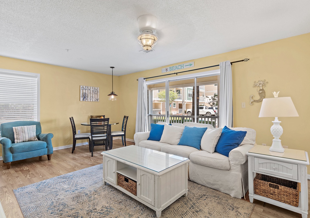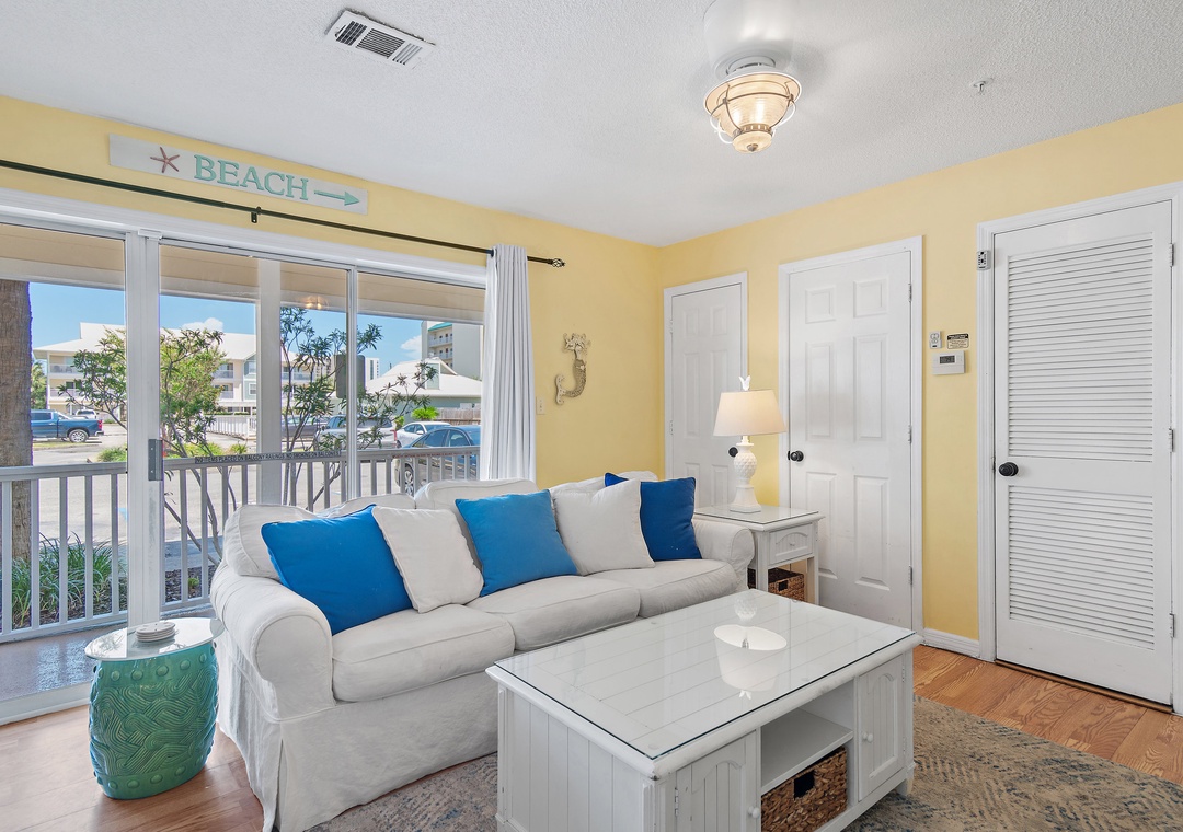 Unwind at St. Martin Beachwalk Villas #214, a charming 2-bedroom, 2-bath ground floor condo that comfortably sleeps up to 6 guests. Just 200 yards from the private, deeded beach access, this laid-back retreat offers unbeatable convenience—no need to cross any roads to reach the beautiful white sand. Inside, the condo features a relaxing open layout perfect for family vacations or a trip with friends. Sleeping arrangements include two queen-sized beds and a sleeper sofa in the living room. The fully equipped kitchen makes it easy to prepare meals and snacks during your stay, and a washer and dryer add extra convenience for longer getaways. Whether you're lounging indoors or heading out to enjoy the sun and surf, St. Martin Beachwalk Villas #214 is your perfect home base for a relaxing coastal escape.