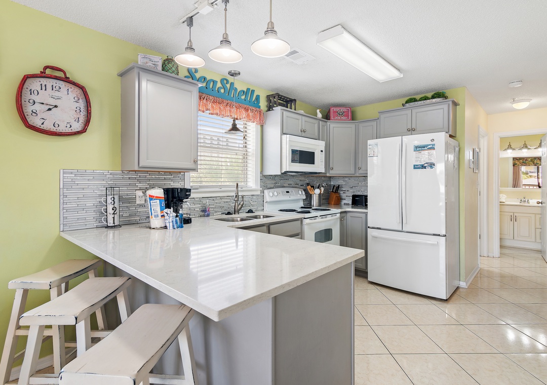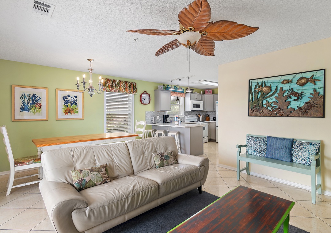 Escape to St. Martin Beachwalk Villas #221, a spacious and inviting 3-bedroom, 2-bath second-floor condo that comfortably sleeps up to 8 guests. Just a short 200-yard stroll to the private, deeded beach, this vacation spot offers all the charm and ease of coastal living—without the need to cross busy roads. The condo features tropical-inspired décor and an open, relaxed layout perfect for families or groups. Sleeping arrangements includes a total of 2 queen-sized beds and a twin over full bunk with pull out trundle, providing plenty of space for everyone to unwind. The fully equipped kitchen is ready for meal prep, and the in-unit washer and dryer add extra convenience during your stay. Whether you're soaking up the sun on the nearby beach or enjoying quiet moments indoors, St. Martin Beachwalk Villas #221 is the ideal place to make lasting beachside memories.