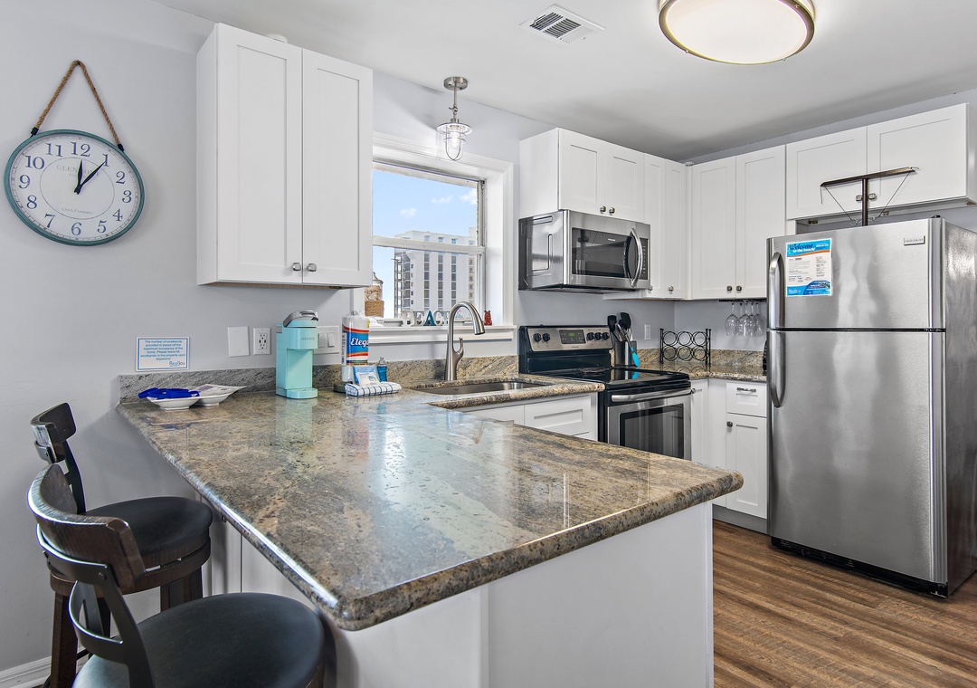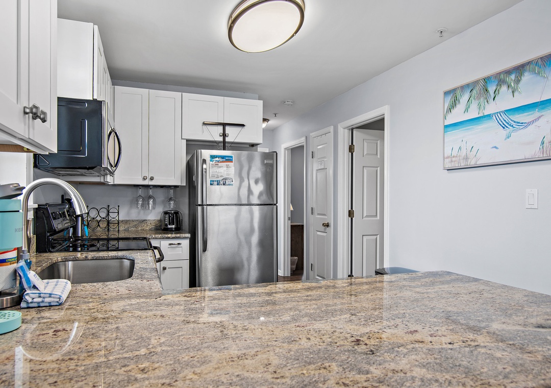 Welcome to St. Martin Beachwalk Villas #231, a bright and modern third-floor condo designed to make all your beach-vacation dreams come true. This fully renovated 3-bedroom, 2-bath retreat features fresh paint, new flooring, updated bathrooms, granite countertops, a walk-in master shower, and a guest bathtub. Feel your stress melt away as you step onto the balcony with your favorite beverage and enjoy the refreshing sea breeze. The master bedroom offers a king bed, while the guest rooms include a queen bed and a twin-over-double bunk, with additional sleeping space on a double sleeper sofa in the living room. Just a short 200-yard stroll to the private deeded beach—with no busy roads to cross—you’ll love the simplicity and charm of true coastal living. A fully equipped kitchen and in-unit washer and dryer provide all the conveniences of home. Whether you’re soaking up the sun or unwinding indoors, St. Martin Beachwalk Villas #231 is the perfect place to create lasting beachside memories.