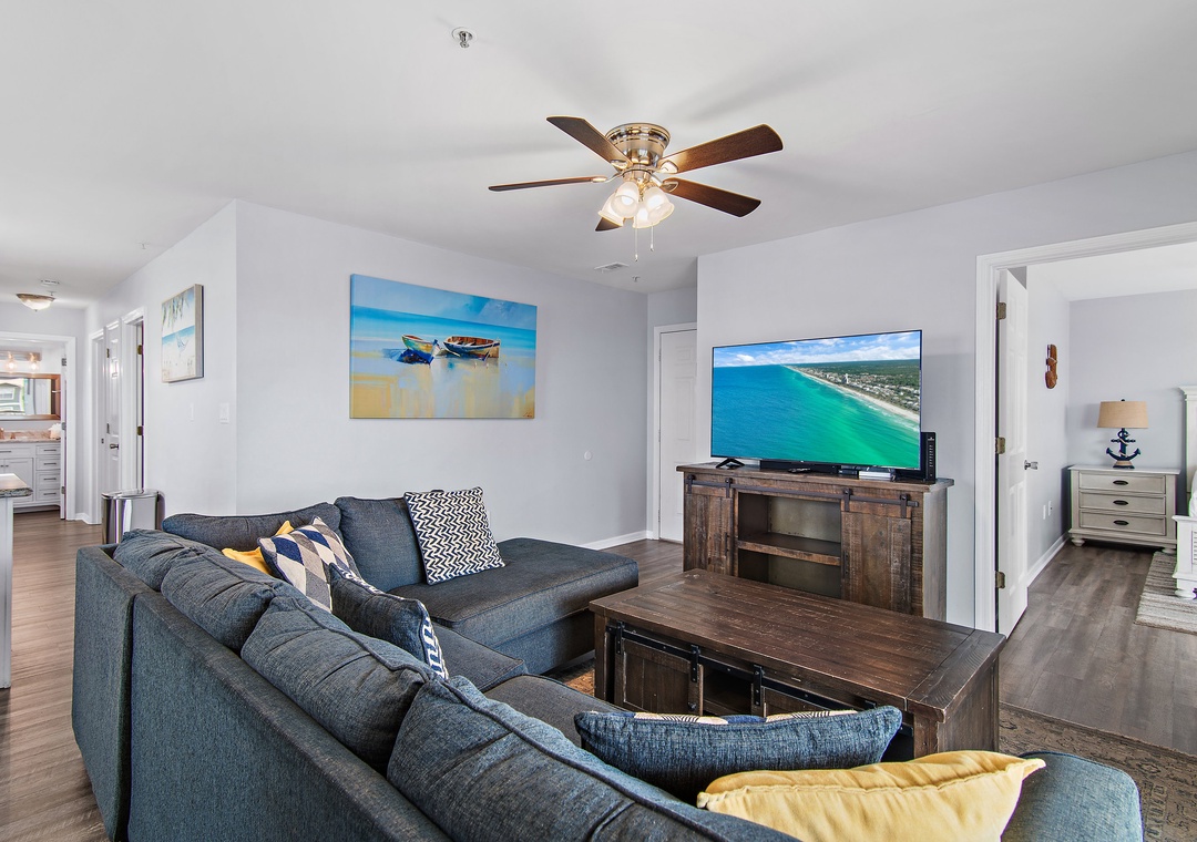 Close by is Destin Commons, a beautifully landscaped, pedestrian-friendly area and a great family venue where children will love to play in the interactive water fountains. Also, for the younger guests, a nautically/pirate themed outdoor playground features a 1,750 square foot soft play area with various creatures from the sea, slides, and a treasure chest! Destin Commons also has a mini train for the kids. Destin Commons features over 75 shops and restaurants, including Godiva Chocolates, AMC Movie Theaters, and Bass Pro Shop.
