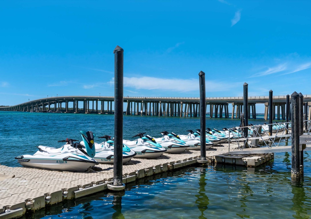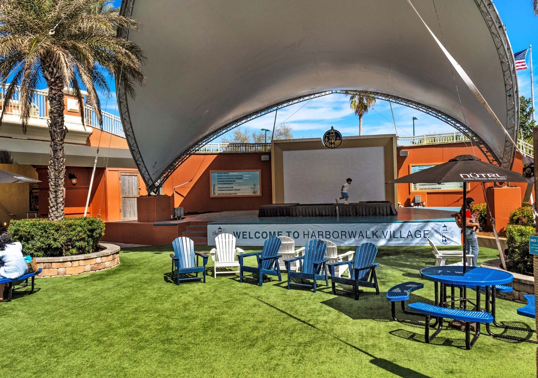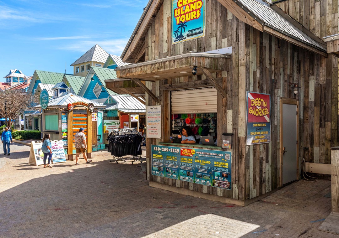 Close by is Destin Commons, a beautifully landscaped, pedestrian-friendly area and a great family venue where children will love to play in the interactive water fountains. Also for the younger guests, a nautically/pirate themed outdoor playground features a 1,750 square foot soft play area with various creatures from the sea, slides, and a treasure chest! Destin Commons also has a mini-train for the kids. Destin Commons features over 75 shops and restaurants, including Godiva Chocolates, AMC Movie Theaters and Bass Pro Shop.