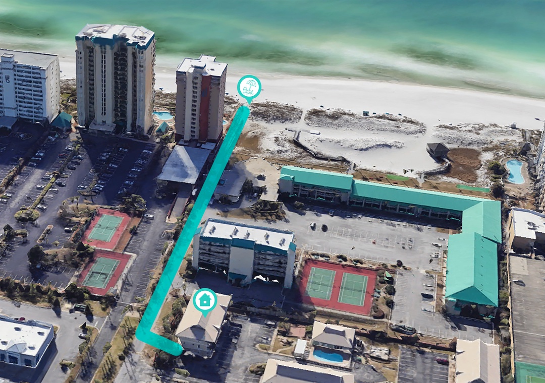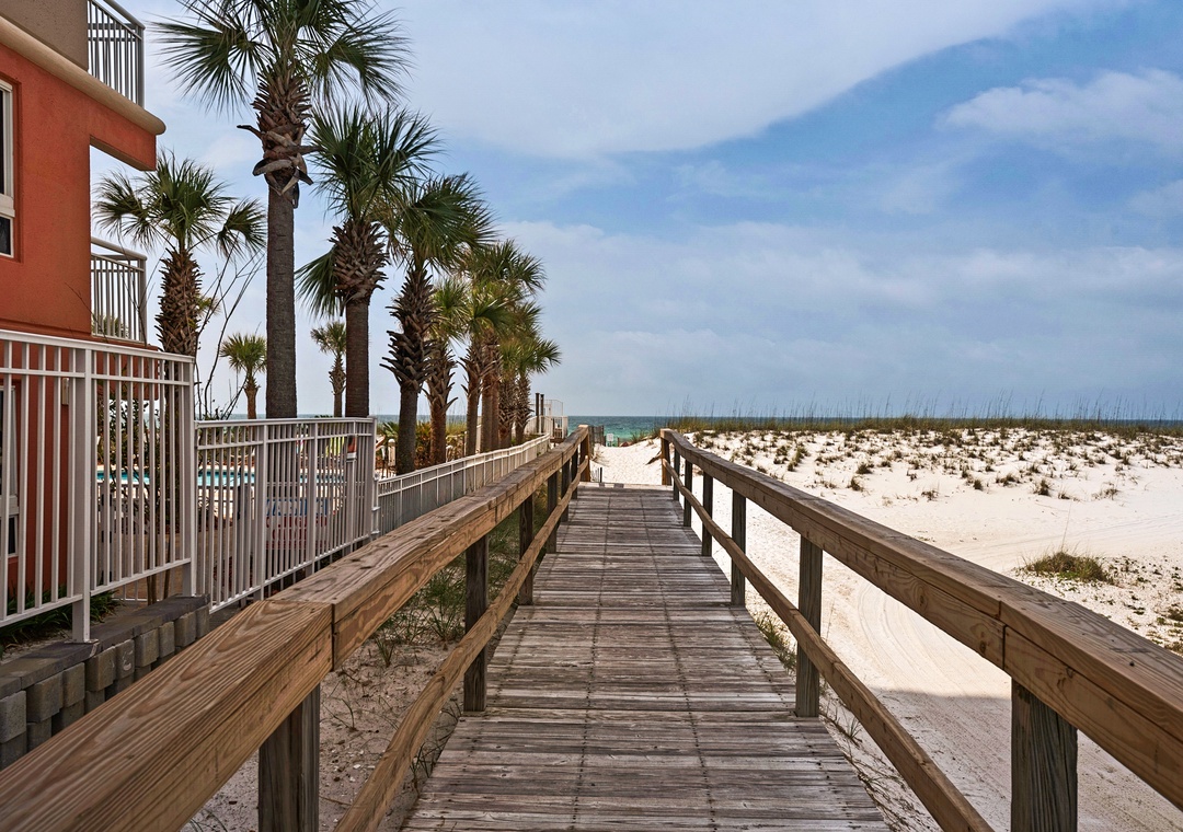 St. Martin Beachwalk Villas has a deeded beach access down your own private walkway. You do not have to cross Highway 98 to get to the sugar white sands and emerald green waters of the Gulf. The 3-story, low rise complex is centrally located in Destin, so you can leave the car parked all week and enjoy the community pool, grilling area, close proximity to Big Kahuna's water park, shopping, restaurants, and more! You can't beat the convenience and affordability of St. Martin Beachwalk Villas! Please note, this complex does not have an elevator.