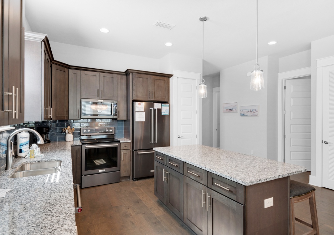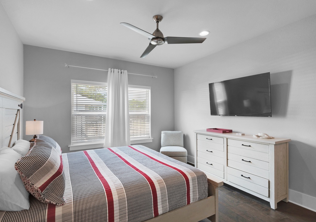 Located in Villas of Frangista, Stay Anchored is a beautiful 4 bedroom, 3.5 bathroom home with a huge open living area and high-end touches, including granite counters, stainless steel appliances, wood-look tile flooring, high ceilings, plus a covered back porch with a fenced-in yard! There are three king bedrooms, and two sets of twin over full bunks in the 4th bedroom, sleeping up to 12 guests comfortably.You'll be about 1408 yards from public beach access to the gorgeous white sands of Miramar Beach! When not enjoying the beach, stroll over to the community pool just a couple of blocks away. Feel free to park a car in the garage and enjoy lasting memories by making Stay Anchored your next vacation destination!
