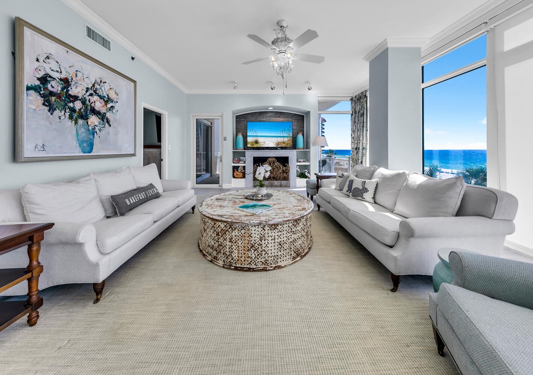 Welcome to Sterling Beach 301, a stunning 3BR, 3BA gulf-front condo located in Panama City Beach. This beautifully decorated unit sleeps 6 with a king bed in each of the three bedrooms. It is also complete with a fully equipped kitchen and a washer and dryer, plus floor-to-ceiling windows to take in the beautiful views. Catch incredible sunsets over the water with a book or cocktail from your private balcony. Enjoy watching a movie in the spacious living room after a fun day in the sun. Come make Sterling Beach 301 a family vacation tradition for years to come.