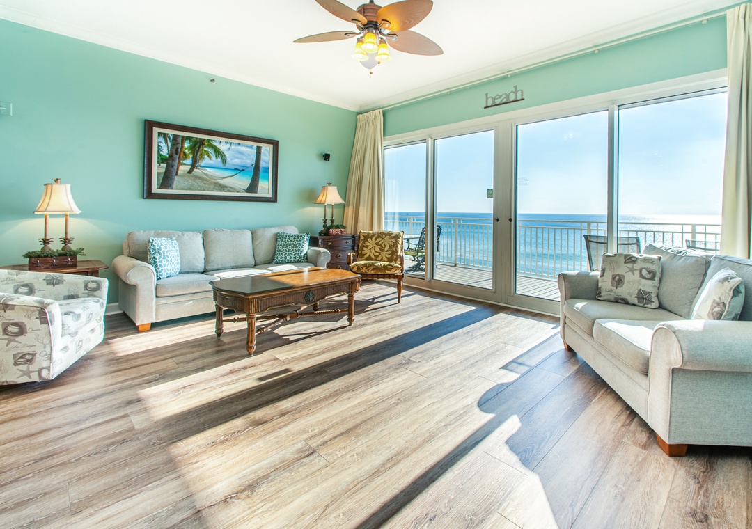 Sterling Beach 602 is a lovely 3-bedroom, 2-bathroom gulf-front condo located in Panama City Beach. This beautifully decorated condo sleeps 8 with a king in the master bedroom, a queen in the guest bedroom, another guest bedroom with a queen bed, and a queen-size sleeper sofa in the living room. It is also complete with a fully equipped kitchen, a washer and dryer, and a private balcony to take in the stunning views of the Gulf Coast. Sit on your couch and gaze out of the sliding glass doors to watch the amazing sunsets. Sterling Beach 602 is perfect for your beach vacation!