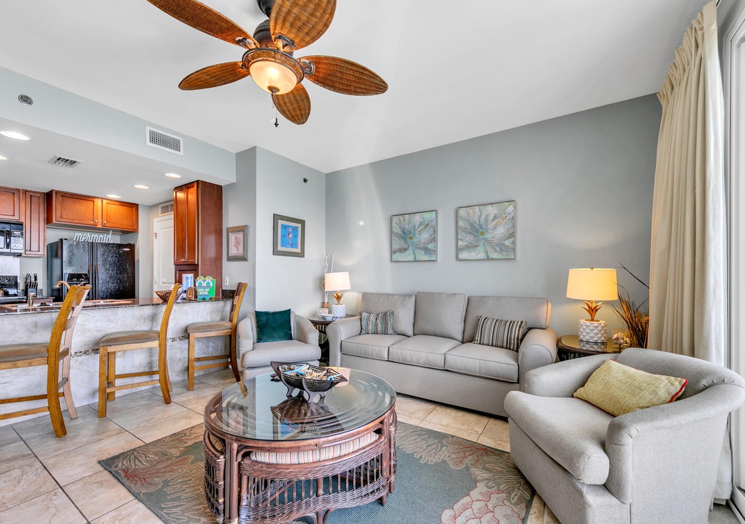 Sterling Breeze 1903 is a stunning 1 bedroom + bunks/2 bath condo that is beautifully decorated with lovely furnishings! This Gulf FRONT unit is only 0.5 mile from Pier Park, so you can enjoy a vacation as relaxing or exciting as you want! The kitchen is equipped with granite counters and a breakfast bar. The main bedroom has a spacious king size bed and an en suite bathroom with a tiled walk in shower and vanity. With a set of twin bunks and a sleeper sofa. This lovely condo sleeps 6 guests comfortably. Enjoy the unit's coffee maker and sip your morning coffee on the Gulf Front balcony, with spectacular views of sugar white sands and emerald waters. Skip the restaurant's long wait time for dinner and have a meal with a view cooked on your own electric grill located on the balcony! Make your next vacation one to remember at Sterling Breeze 1903!