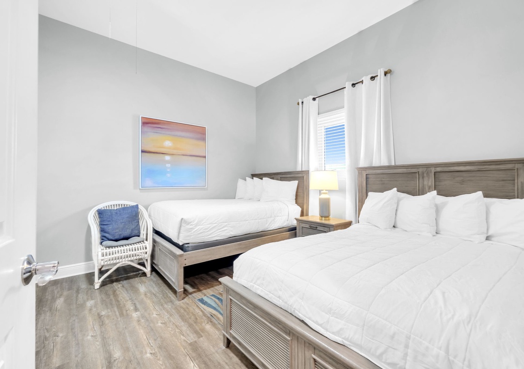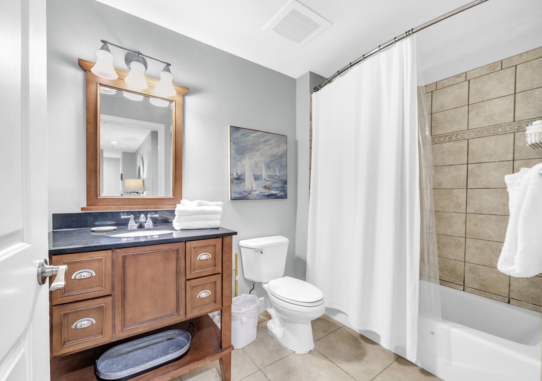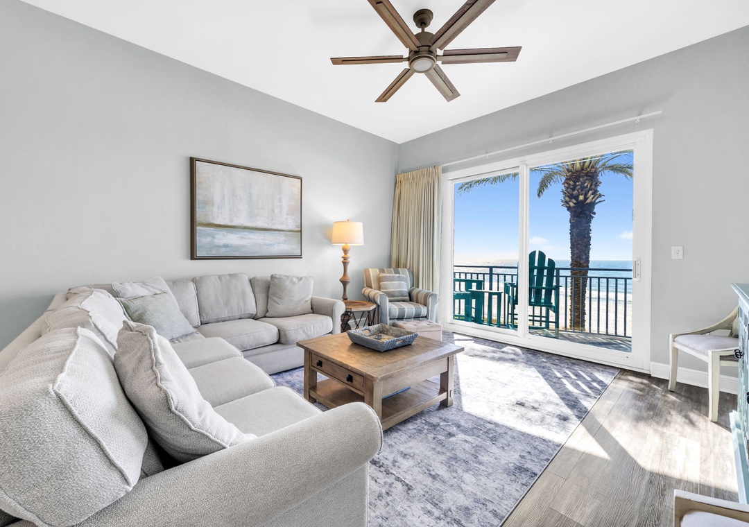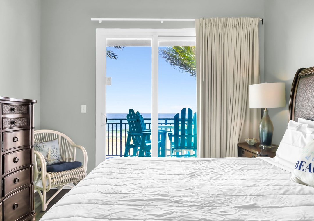 Sterling Breeze 205 is a stunning 3 bedroom, 2 bath condo that is beautifully decorated and lovely furnishings! This Gulf FRONT unit is only half a mile from Pier Park, so you can enjoy a vacation as relaxing or exciting as you want! The master bedroom has a roomy king bed, an ensuite bathroom with a tiled walk-in shower, and double vanities. With a queen bed in the second guest bedroom, and two full beds in the 3rd guest bedroom, and a sleeper sofa in the living room. This lovely condo sleeps 10 guests comfortably. Wake up with morning coffee or throw some steaks on the included grill for dinner on the Gulf Front balcony, with spectacular views of the sugar white sands and emerald waters. Make your next vacation one to remember at Sterling Breeze 205!