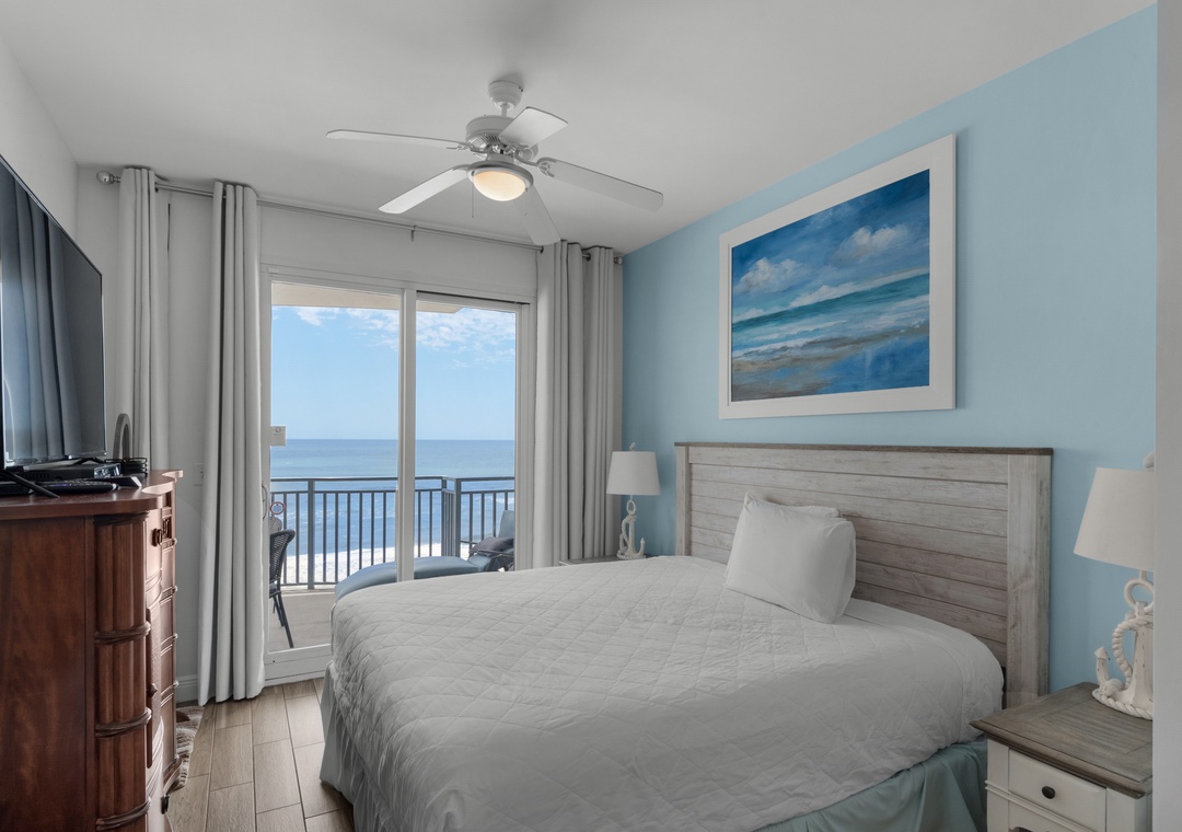 Sterling Breeze 804 is a stunning 2 bedroom + bunk room, 3 bath condo that is beautifully decorated with bright colors and lovely furnishings! This Gulf FRONT unit is only half a mile from Pier Park, so you can enjoy a vacation as relaxing or exciting as you want! The master bedroom has a roomy king bed, an ensuite bathroom with a tiled walk-in shower, and double vanities. With a King bed in the guest bedroom, a twin-over-full bunk bed in the enclosed bunk room, and a queen sleeper sofa in the living room, this lovely condo sleeps 9 guests comfortably. Wake up with morning coffee or throw some steaks on the included grill for dinner on the Gulf Front balcony, with spectacular views of the sugar white sands and emerald waters. Make your next vacation one to remember at Sterling Breeze 804!