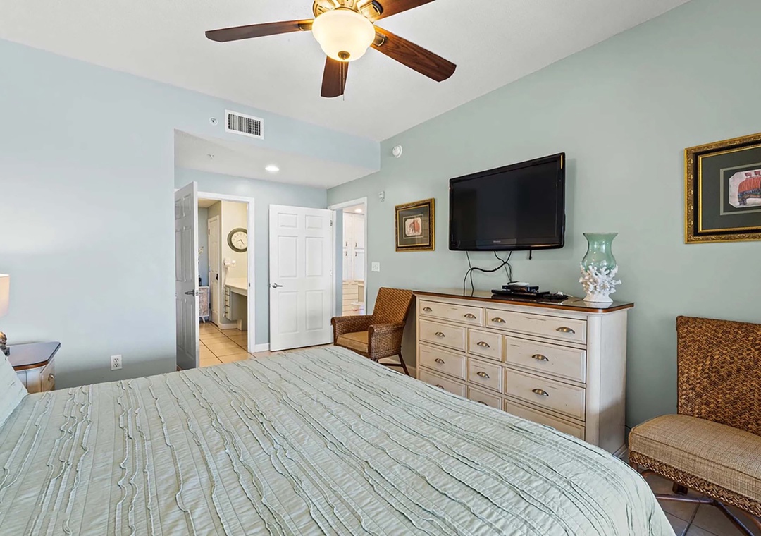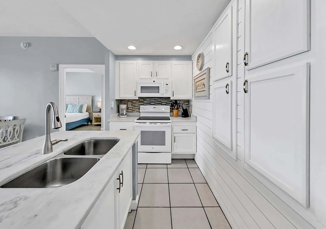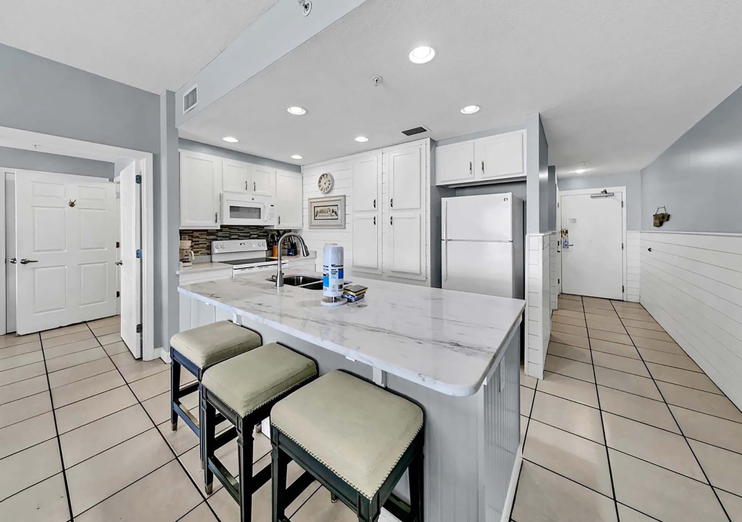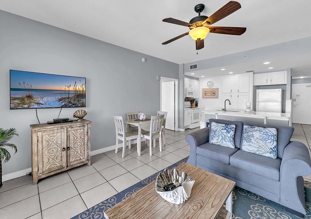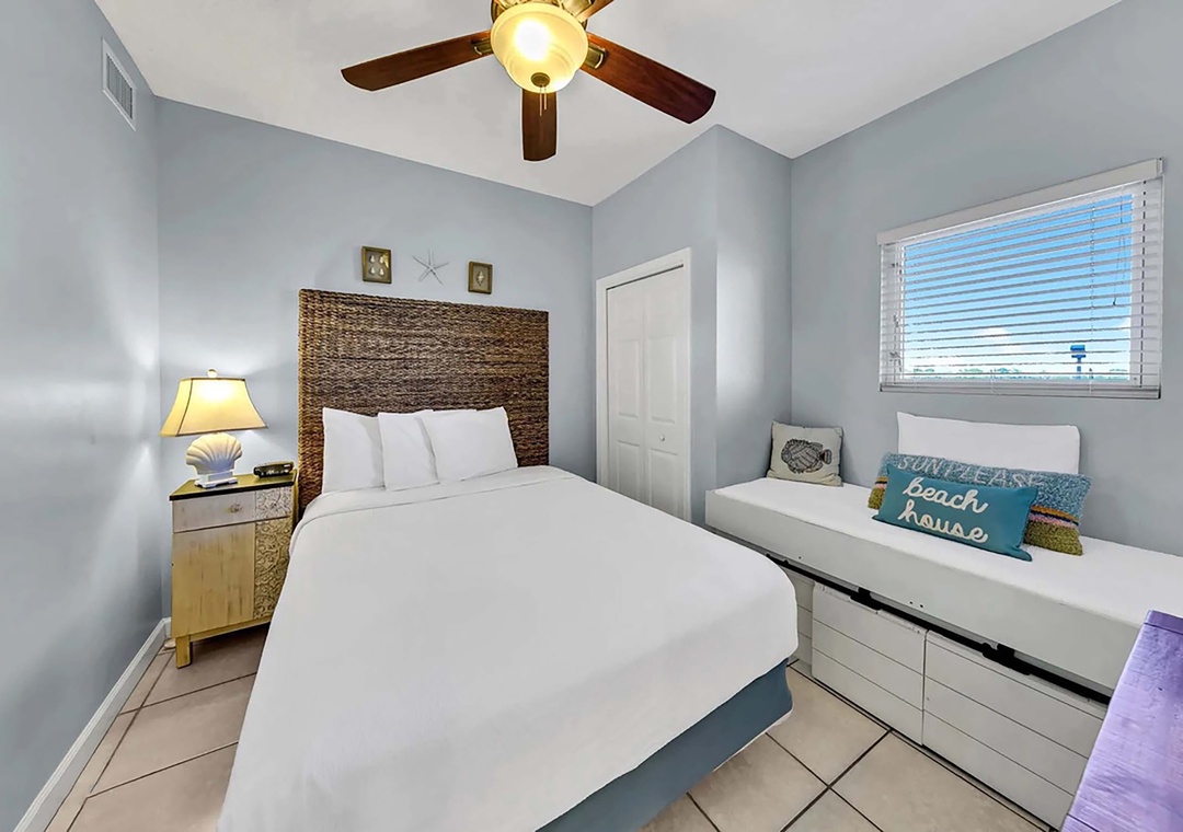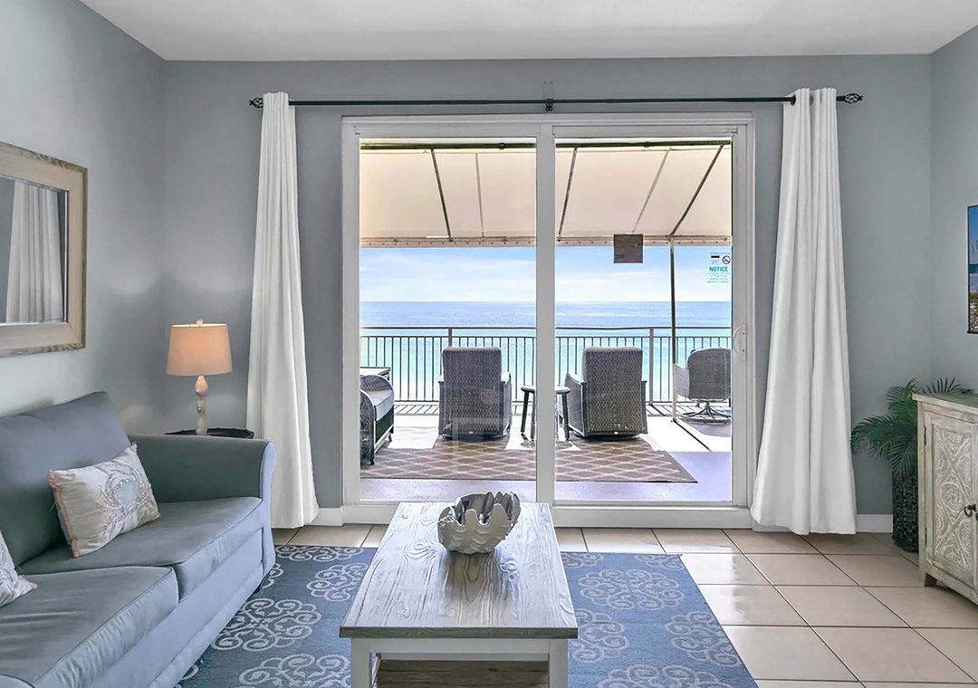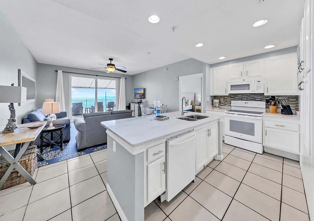 Sterling Reef 104 is a beautifully decorated 2-bedroom, 2-bath beachfront condo offering stunning Gulf views of sugar-white sands and emerald waters. Take in the scenery from your large private covered balcony or enjoy the view from the living room, kitchen, and master bedroom. The master suite features a king bed with direct balcony access, while the guest bedroom offers a comfortable queen bed, and a sleeper sofa in the living area allows the condo to comfortably accommodate up to six guests. With breathtaking views and a prime location, Sterling Reef 104 is sure to become your family’s favorite vacation getaway.