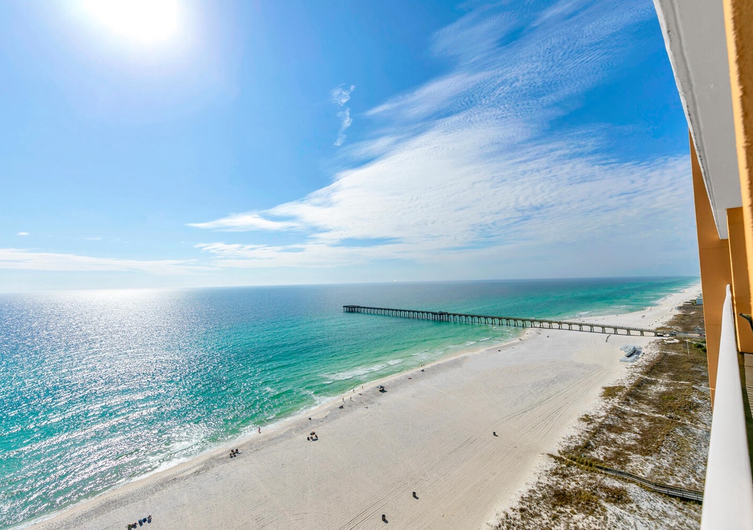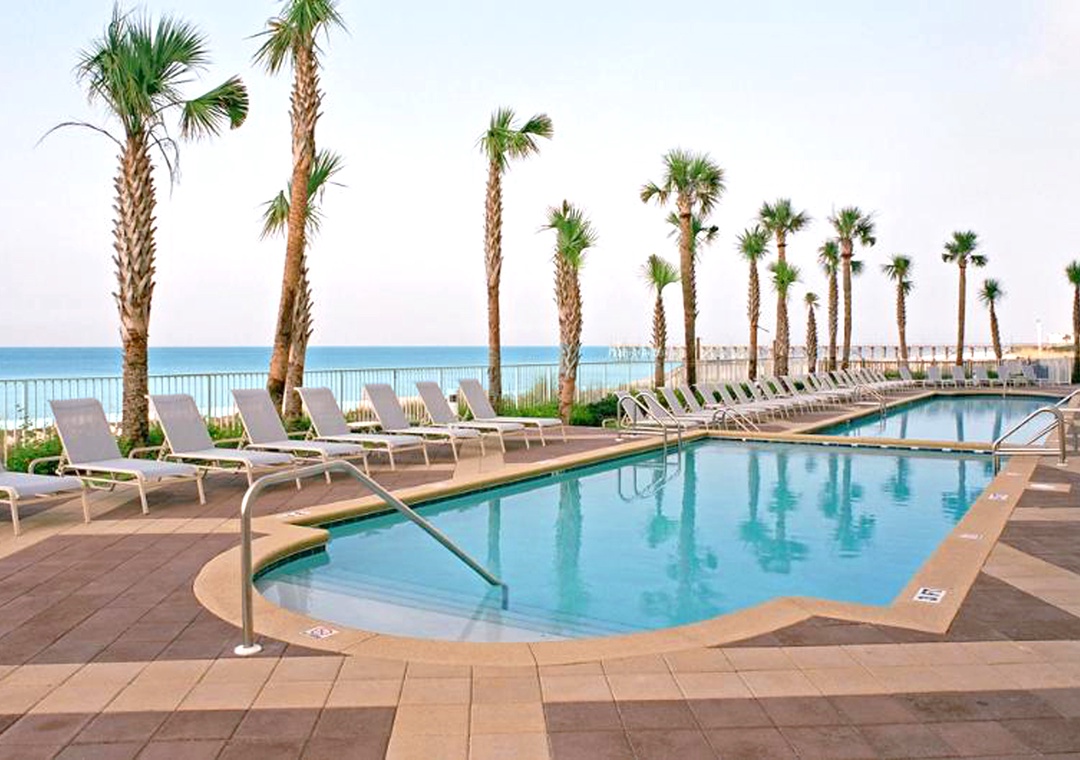 Built in 2005, Sterling Reef is in a fantastic location on Panama City Beach, only .5 miles from Shipwreck Island and within walking distance of the fishing pier. Vacation rentals at this lovely resort have a seasonally heated 4000sqft bi-level pool with waterfall at their disposal, a fitness center overlooking the pool and beach area, an activity room w/ flatscreen TV, and grills on the sky terrace. Watersport rentals are also available.