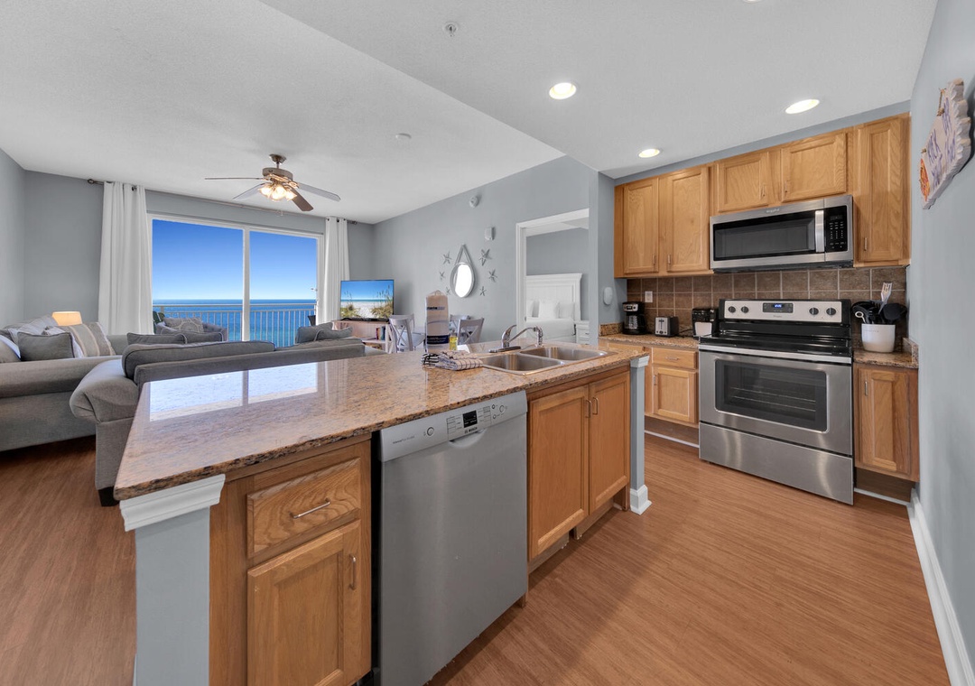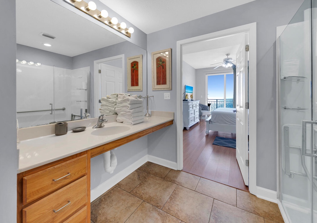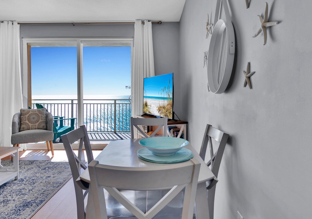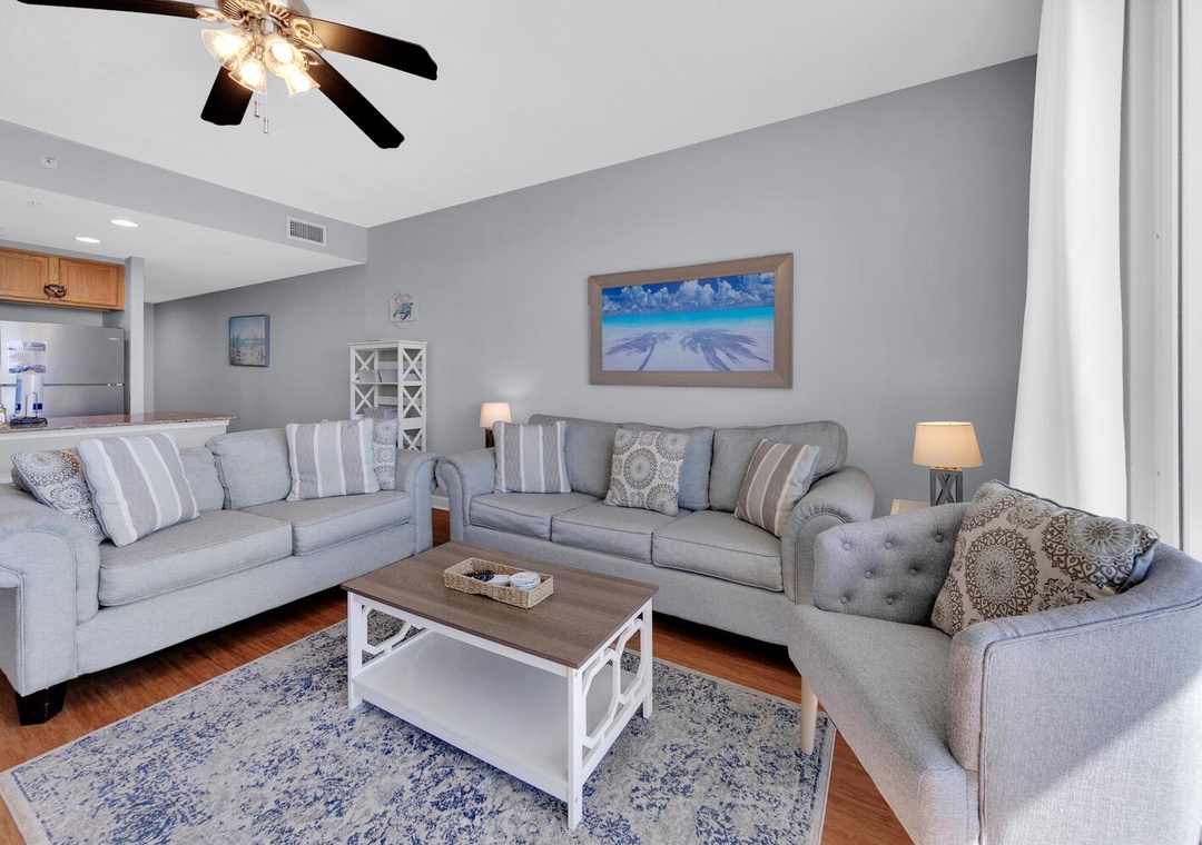 The condo was surprisingly roomy for my husband and I, our daughter, and our two small grandchildren. It was clean and the beds were comfortable. The complementary beach chairs were wonderful, and there were beach toys and things to use on the beach in the condo as well, which was fabulous! We were there for four nights and did not leave one time because we ordered DoorDash for every meal. We enjoyed sitting on the balcony, but although it says it is seventh floor, that’s on top of the parking garage, so it’s really more like the 10th floor. The view was beautiful, but I am a little leery of heights so I would’ve preferred it to be lower although that is simply a personal preference. There was an issue with me understanding how to use the thermostat, but I called the number and it was quickly resolved. The best part was that the parking pass and wristbands were already in our room, so check in was wonderful. We had enough towels and paper towels, but we probably should’ve brought an extra garbage bag or two. The condo is also very convenient to Publix and Walmart. We had a wonderful stay, and I would recommend this condo to anybody going to the beach.- Reviewed On: 10/25/2024