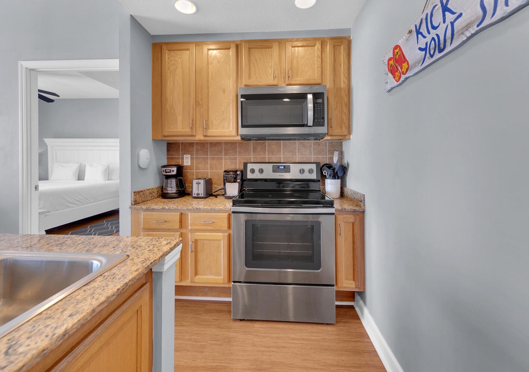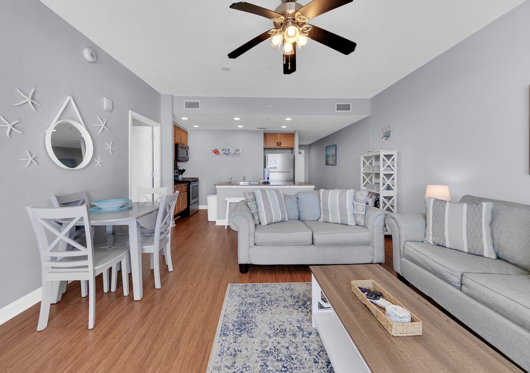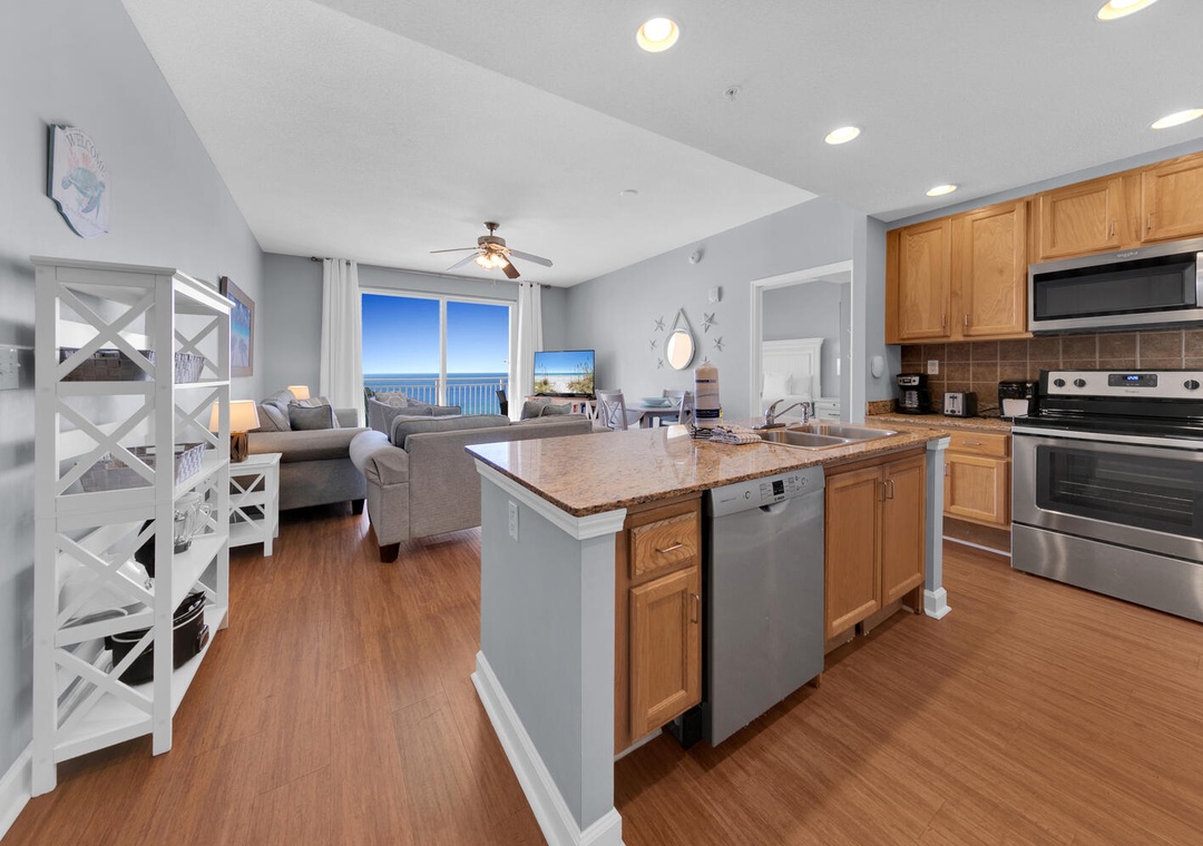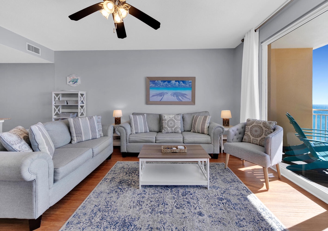 The condo was surprisingly roomy for my husband and I, our daughter, and our two small grandchildren. It was clean and the beds were comfortable. The complementary beach chairs were wonderful, and there were beach toys and things to use on the beach in the condo as well, which was fabulous! We were there for four nights and did not leave one time because we ordered DoorDash for every meal. We enjoyed sitting on the balcony, but although it says it is seventh floor, that’s on top of the parking garage, so it’s really more like the 10th floor. The view was beautiful, but I am a little leery of heights so I would’ve preferred it to be lower although that is simply a personal preference. There was an issue with me understanding how to use the thermostat, but I called the number and it was quickly resolved. The best part was that the parking pass and wristbands were already in our room, so check in was wonderful. We had enough towels and paper towels, but we probably should’ve brought an extra garbage bag or two. The condo is also very convenient to Publix and Walmart. We had a wonderful stay, and I would recommend this condo to anybody going to the beach.- Reviewed On: 10/25/2024