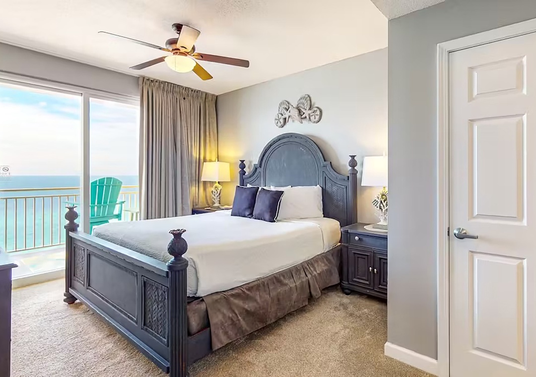 Welcome to Sterling Reef 902, a beautifully designed 2-bedroom, 2-bathroom condo set directly on the sugar-white sands of Panama City Beach. This stunning beachfront retreat offers sweeping Gulf views from a spacious private balcony—also visible from the living room, kitchen, and serene master suite. The master bedroom features a luxurious king-size bed and direct balcony access, making it the perfect spot to start your day with a sunrise over the water. The guest bedroom offers a comfortable queen-size bed, ensuring a restful stay for up to four guests. Ideally located in the heart of Panama City Beach, Sterling Reef 902 is just steps from Shipwreck Island Waterpark and close to shopping, dining, and entertainment. Resort-style amenities include sparkling beachfront pools, relaxing hot tubs, and a fully equipped fitness center—all designed to enhance your vacation experience. Whether you're planning a romantic getaway or a fun-filled family trip, Sterling Reef 902 combines comfort, convenience, and incredible views for the ultimate coastal retreat. Book your stay today and create unforgettable memories on the Emerald Coast!