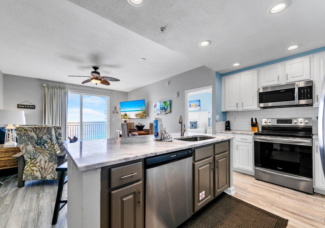 This home seems to be the nicest in the building! The kitchen is small, but had most items you would need. We did add an electric kettle to the two options for coffee makers, because the kettle took a long time to heat. Beds were comfortable and unit is inviting. The beach, water, pool and view were absolutely amazing! We spent a month and really did not feel a need to venture out too much. The location in Panama City was a great choice. It is close to activities, but is not in the areas with wall to wall high rises. Not sure what spring break or summer would be like, but we had no issues with elevators or parking. The property was spotless, not sure I have seen a better maintained pool. Thank you so much for an amazing stay! We will definitely stay again if we return to the area. 🙌- Reviewed On: 11/1/2024