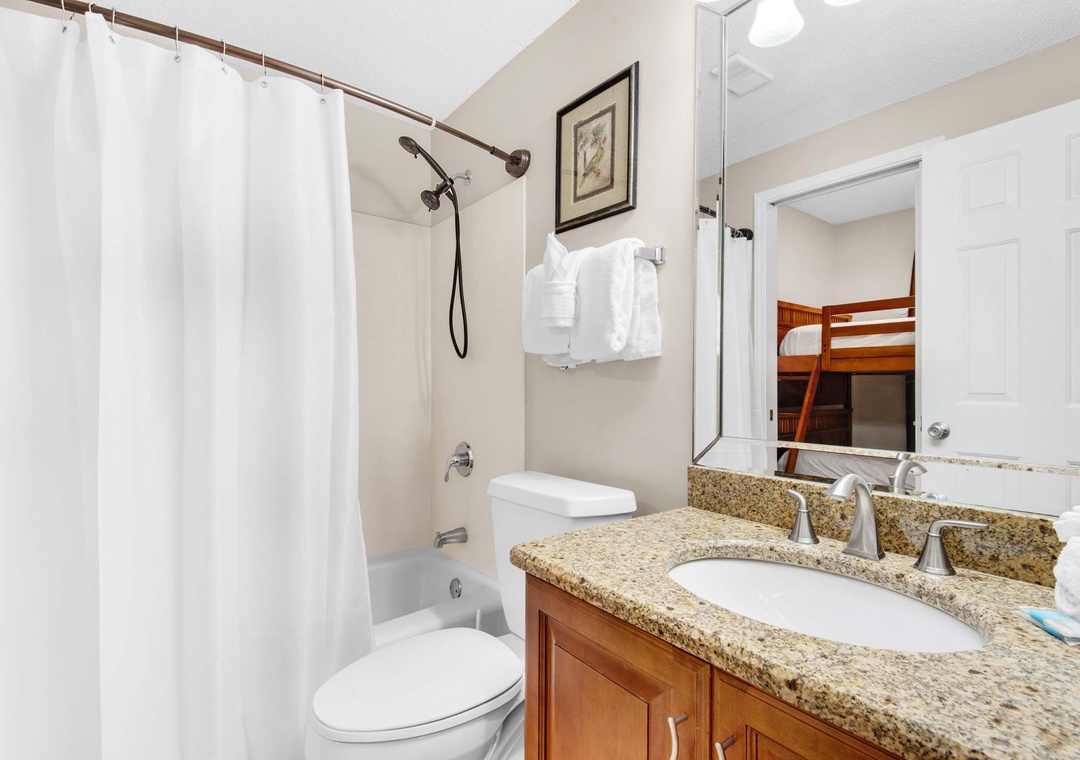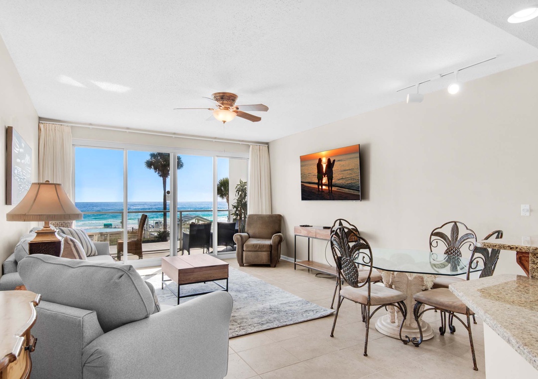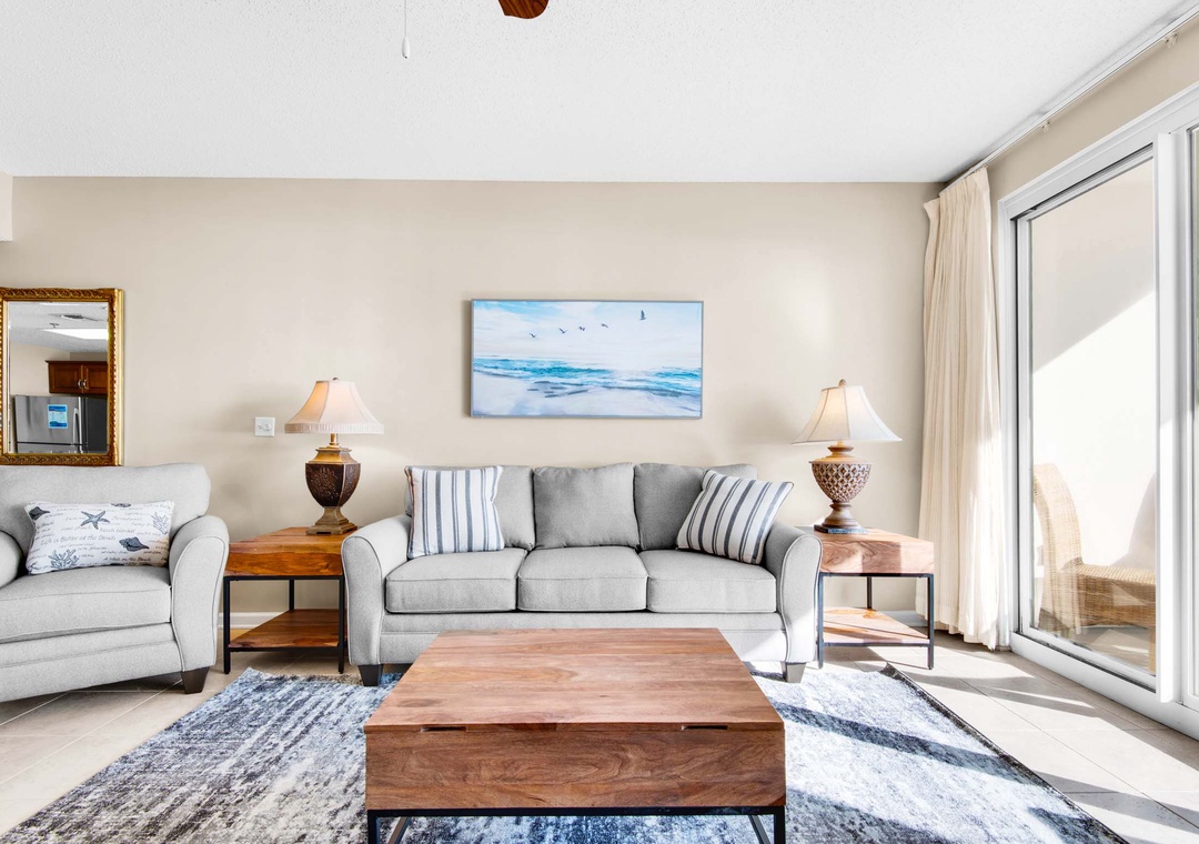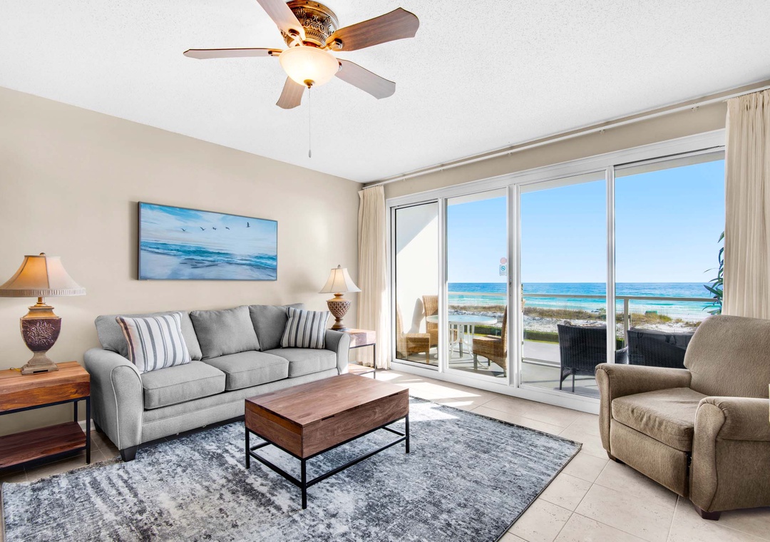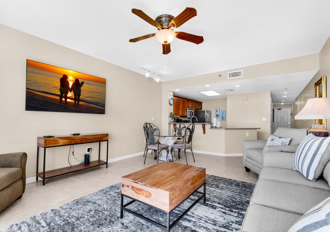 Escape to paradise at Sterling Sands 103! This charming 2-bedroom, 2-bathroom condo is the perfect family-friendly retreat. Unwind on your private balcony, where you can soak in breathtaking sunsets over the water. Inside, you'll find a cozy master suite with a king bed, a comfortable sleeper sofa in the living room, and a fun twin over twin bunk bed in the guest room ideal for families. The fully equipped kitchen makes it easy to enjoy home cooked meals, and with plenty of space, this condo comfortably sleeps 4. Stay active with access to the on-site gym, or simply relax by the sparkling community pool, unwind in the hot tub, or explore all the fantastic amenities at Sterling Sands. Whether you're lounging on the beach or creating unforgettable memories with loved ones, Sterling Sands 103 is the perfect place to make your dream getaway come true!