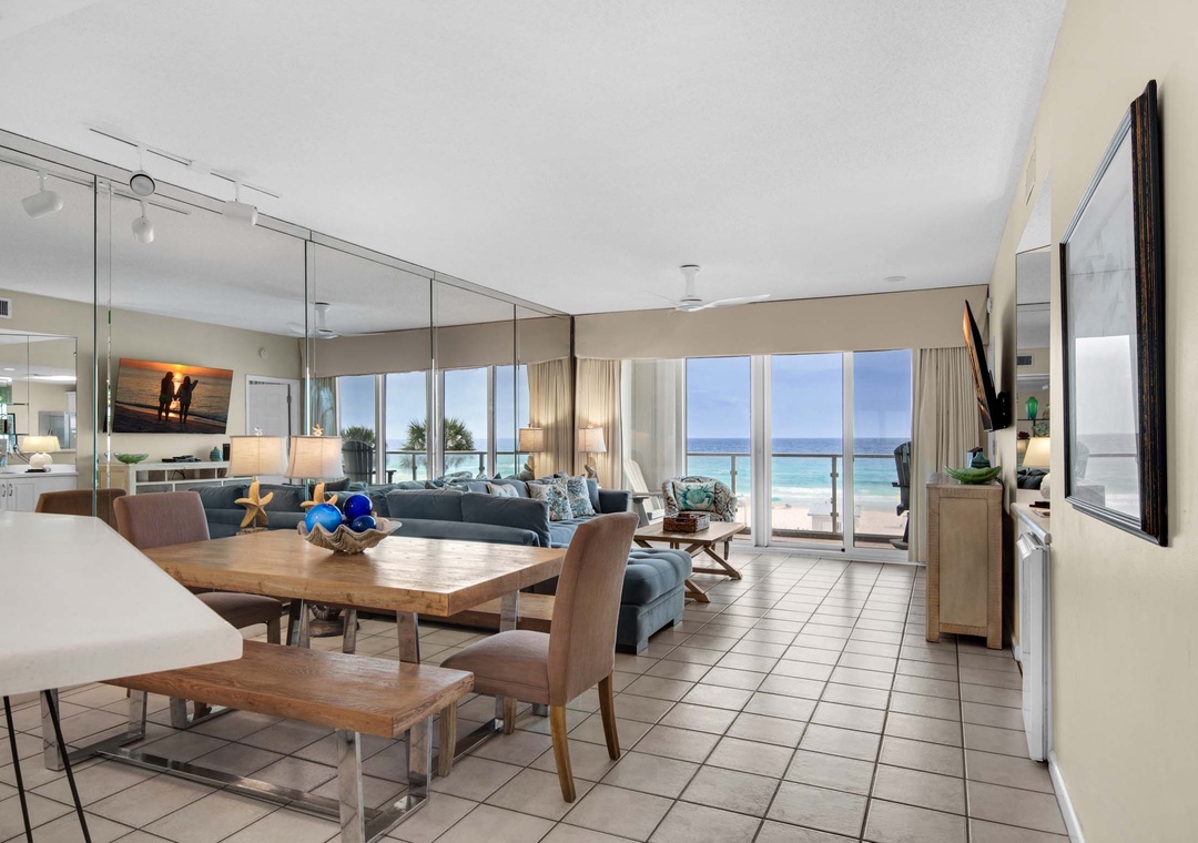 The location was excellent couldn't have asked for a better view. The wall to wall windows and sliding doors were perfect with the amazing view we had. Waking up to a view like that and going to sleep with a view like that is breath taking. The condo was perfect. The size was perfect for 6 ppl. The beds were the most comfortable beds I have ever slept in. We had pretty much everything we could possibly need. I will definitely be booking another vacation there at Sterling Sands. The pool and beach were pretty much right at our feet. We stayed on the second floor. Our room was right off the elevators so that was nice. And we had all attractions and food close even walking distance. Walmart was 5min down the street so convient if your staying more than a few days. I didn't want my vacation to end. I only have 1 complaint. They don't allow smoking anywhere but in front of the condos under the awning. But our place smelled of cigarettes. And then got accused by the night security guard of smoking more then once. Because he said he seen smoke coming from our balcony on our first night and we had just got there and had put our things down to take a look at the view. And from that first day I felt like he was harassing us. Would sit at the corner of the pool just watching us while we sat on our balcony trying to enjoy beautiful view. They did offer to air clean the place to get rid of the smoke smell. That I did appreciate.- Reviewed On: 8/6/2023