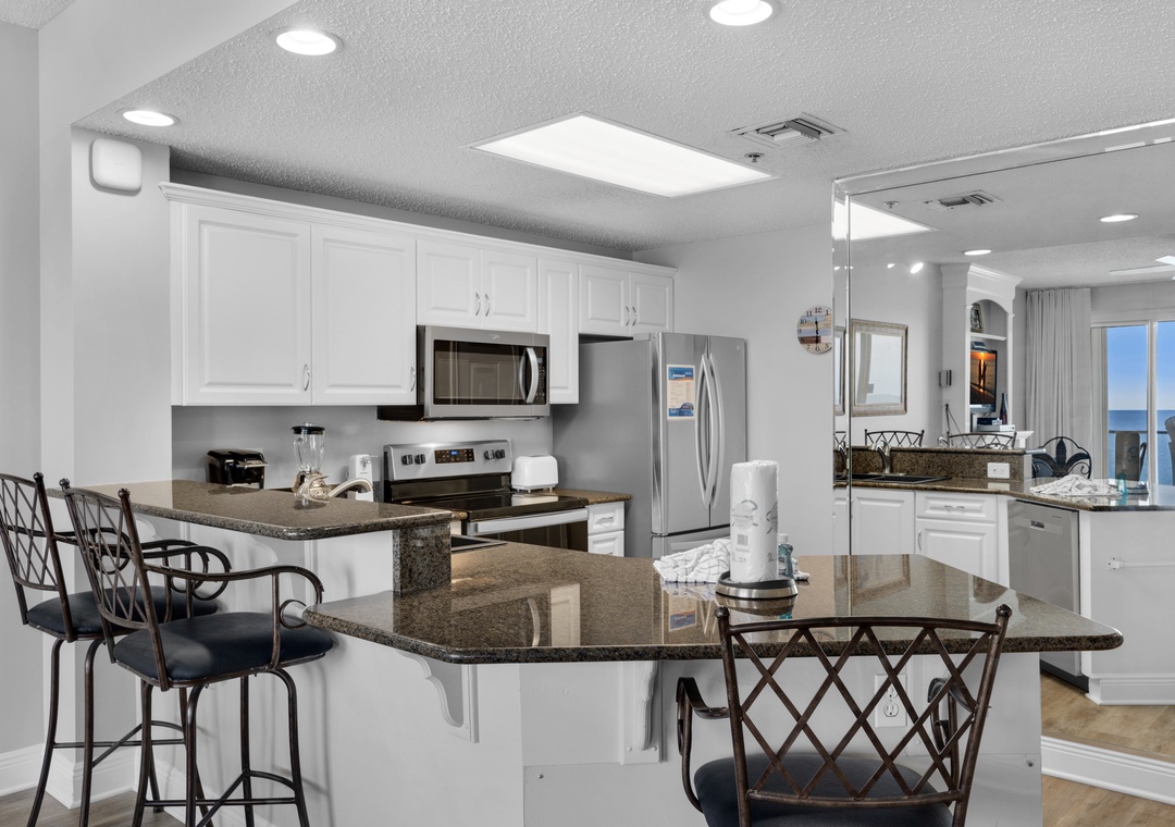 this is even better than the pictures! a few steps from the pool/spa and the private beach, with beach service! the view is amazing and the walls of mirrors make it easy to view the scenery from almost any spot in this space! felt very much at home and couldn't have asked for better! the kitchen is equipped with just about everything you may need, the beds are comfy, linens are clean and fresh, but nothing beats the miraculous view from the balcony! even spotted a few dolphins cruising the waters while drinking coffee and listening to the waves crash. couldn't be happier!- Reviewed On: 6/24/2023
