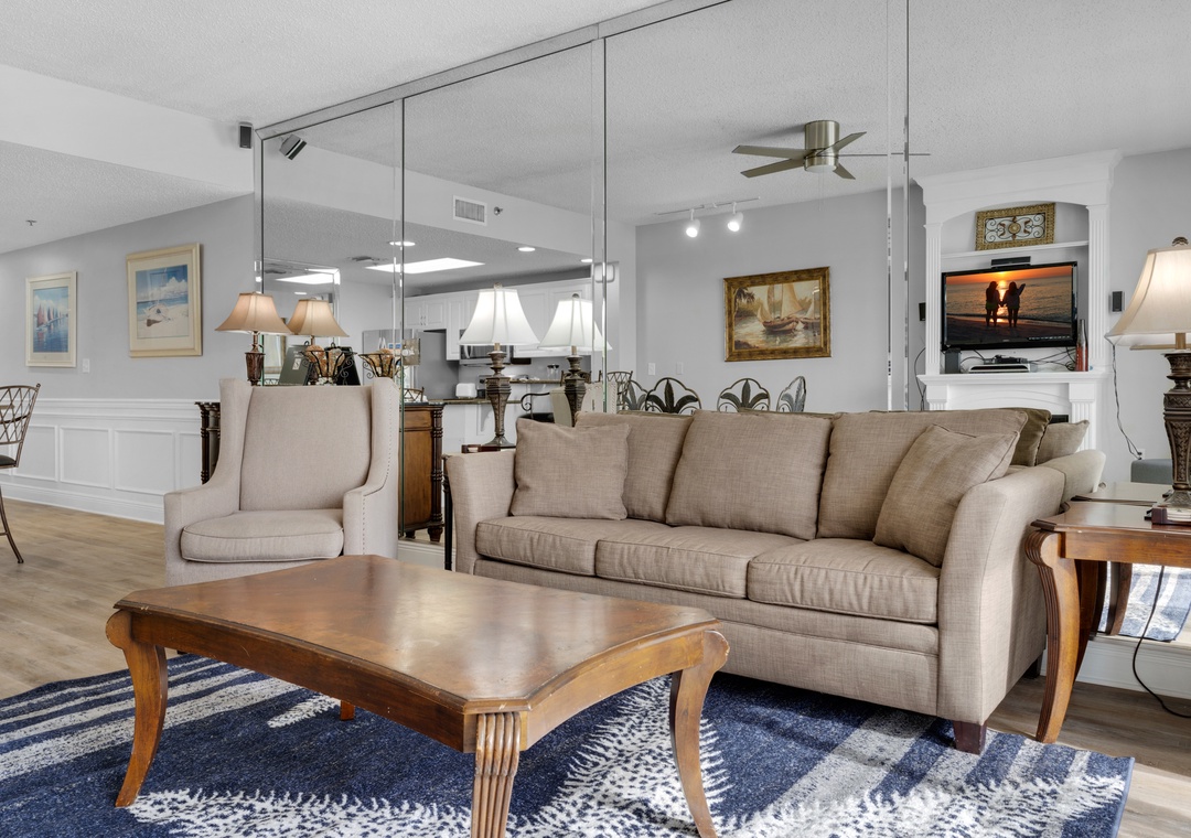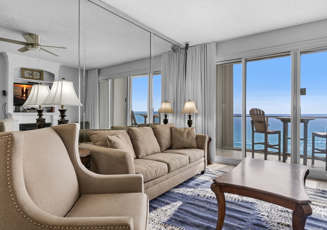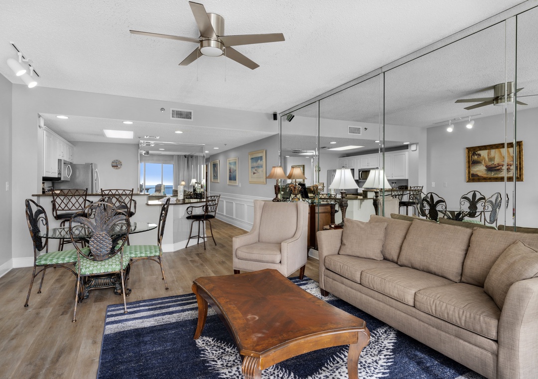 Jennifer, we are happy to know that you enjoyed this two-bed, two-bath Sterling Sands condo's close proximity to restaurant and beach options, its incredibly spacious living room, and its great outdoor seating. Thank you for choosing Real Joy.Real Joy staff