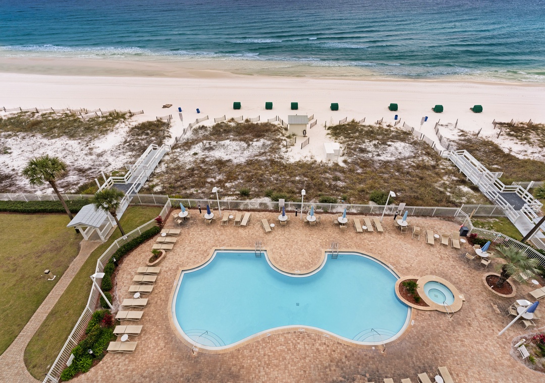 Location and stunning views, anyone? Sterling Sands is an 8-story mid-rise condo building right in the heart of Destin. With all the amenities you're craving nestled in a tropical setting, you'll never want to leave Sterling Sands! Splash around in the 71ft Gulf Front pool (seasonally heated) or relax in the outdoor hot tub. Grill up your catch of the day in the covered barbecue/picnic area or work out in the beachside fitness room. You’ll enjoy the spectacular sunsets from your private balcony and have a vacation to remember! The location of Sterling Sands can't be beat, it's right across the street from The Track Family Fun Park, with mini-golf and go-kart racing, and within minutes from numerous shopping and dining options, including walking distance to the Back Porch.