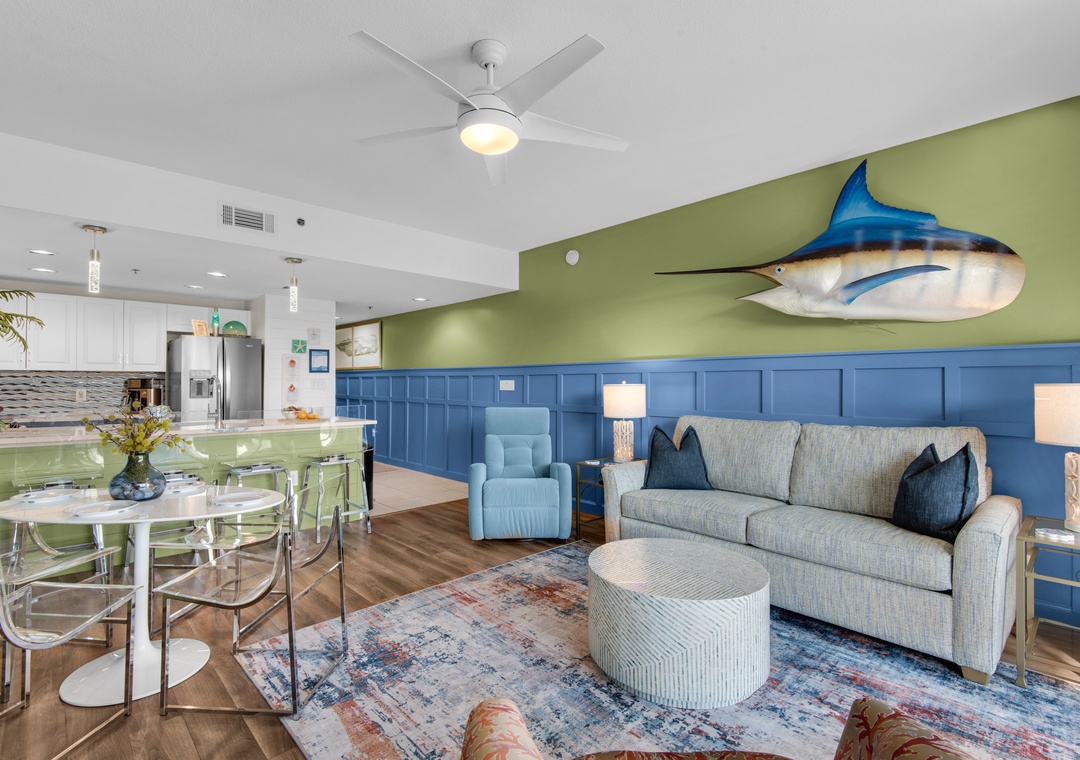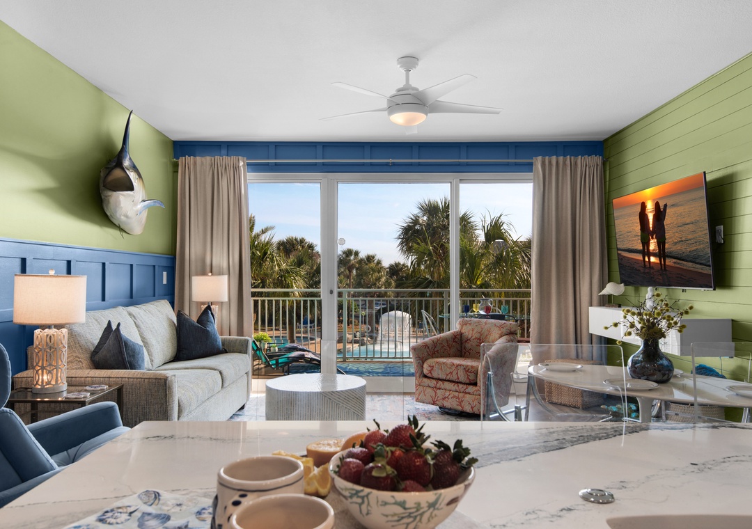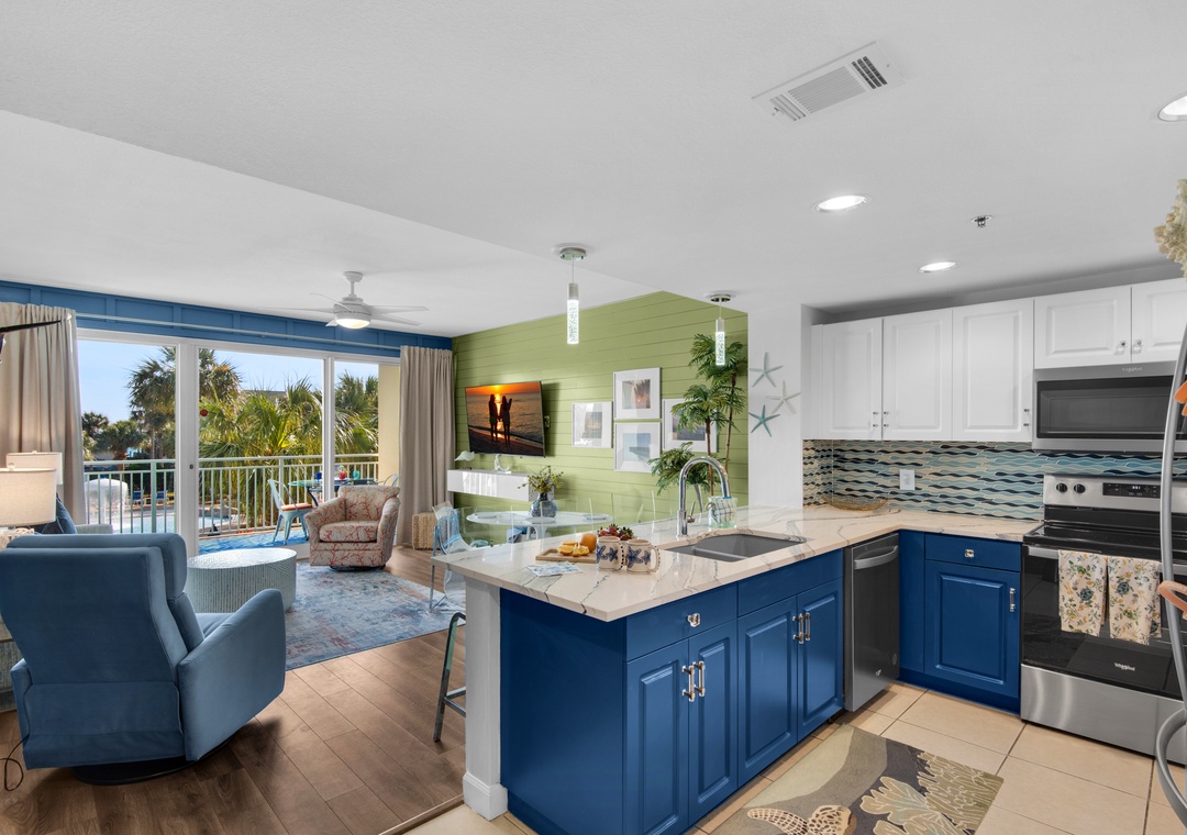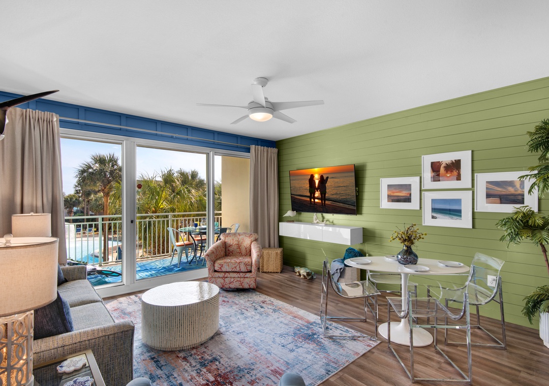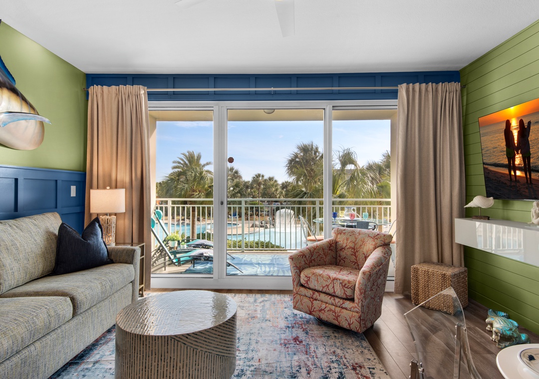 Escape to Sterling Shores 215, a stunning 2BR/2BA "Captiva" floor plan condo in the heart of Destin. Recently updated and beautifully decorated, this bright and vibrant getaway offers a perfect blend of comfort and style. Enjoy breathtaking tropical pool views and just a short 100-foot stroll to the beach. Inside, you'll find stylish new flooring, new furnishings, and a fully equipped kitchen ideal for preparing meals to enjoy on the large balcony, with views that stretch toward the Gulf. With a cozy queen bed in the master bedroom, twin over full bunks in the guest room, and a sleeper sofa in the living room, Sterling Shores 215 comfortably accommodates up to 6 guests. Whether you're relaxing at one of the two community pools, including a beachfront pool, or heading directly to the beach, you're in for an unforgettable stay. Sterling Shores 215 is the perfect choice for a fun family getaway or a relaxing retreat on the Gulf Coast!