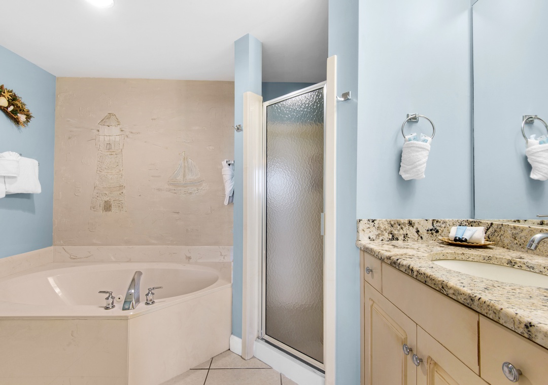 Welcome to your getaway at Sterling Shores # 307 a beautifully decorated 2-bedroom, 2-bathroom condo located at Sterling Shores in the heart of Destin. The Master bedroom has a king bed and ensuite bathroom with a soaking tub and walk-in shower. The Guest bedroom has a double bed, and the living room has a queen sleeper sofa making this unit sleep 6 comfortably! Prepare anything from your morning coffee to a full-course dinner in the well-equipped kitchen. Enjoy having a cup of coffee on your private balcony watching the sunrise or after a fun day with the family enjoy watching the sunset. It's close to all of the best restaurants, attractions, and shopping and a short walk to the beach. Come start making memories at Sterling Shores 307!