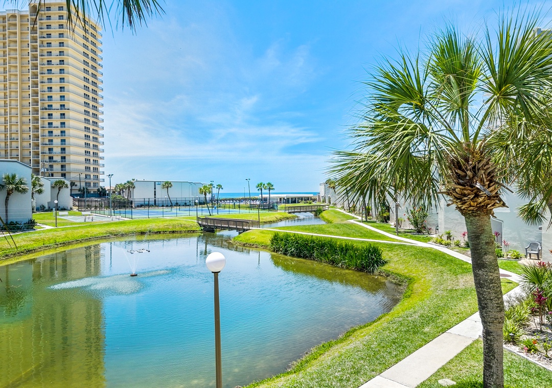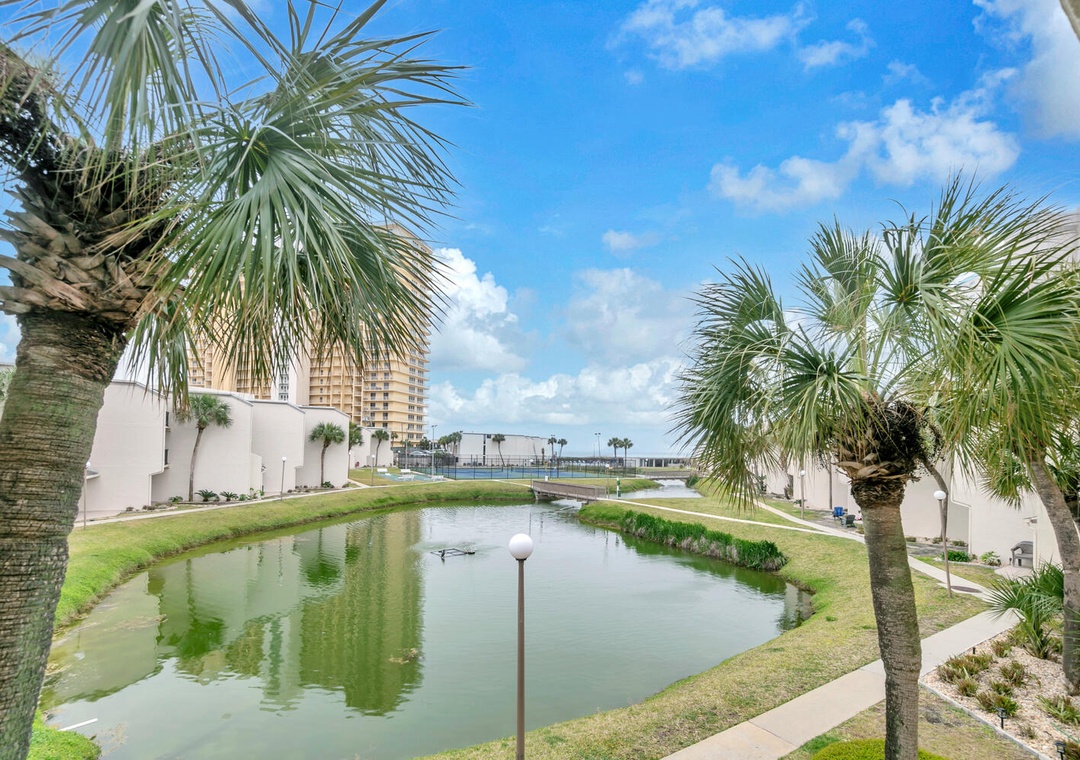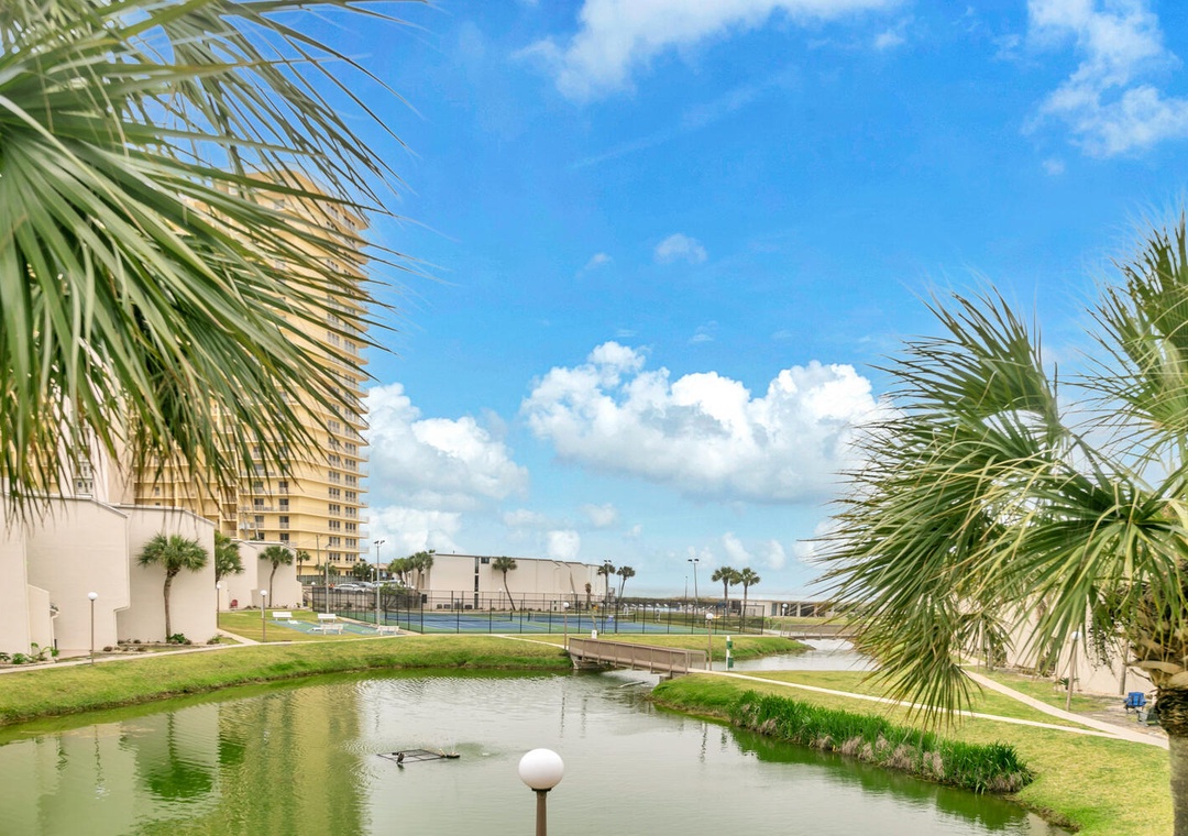 * Large Balcony views freshwater lake, pool, AND the Gulf
