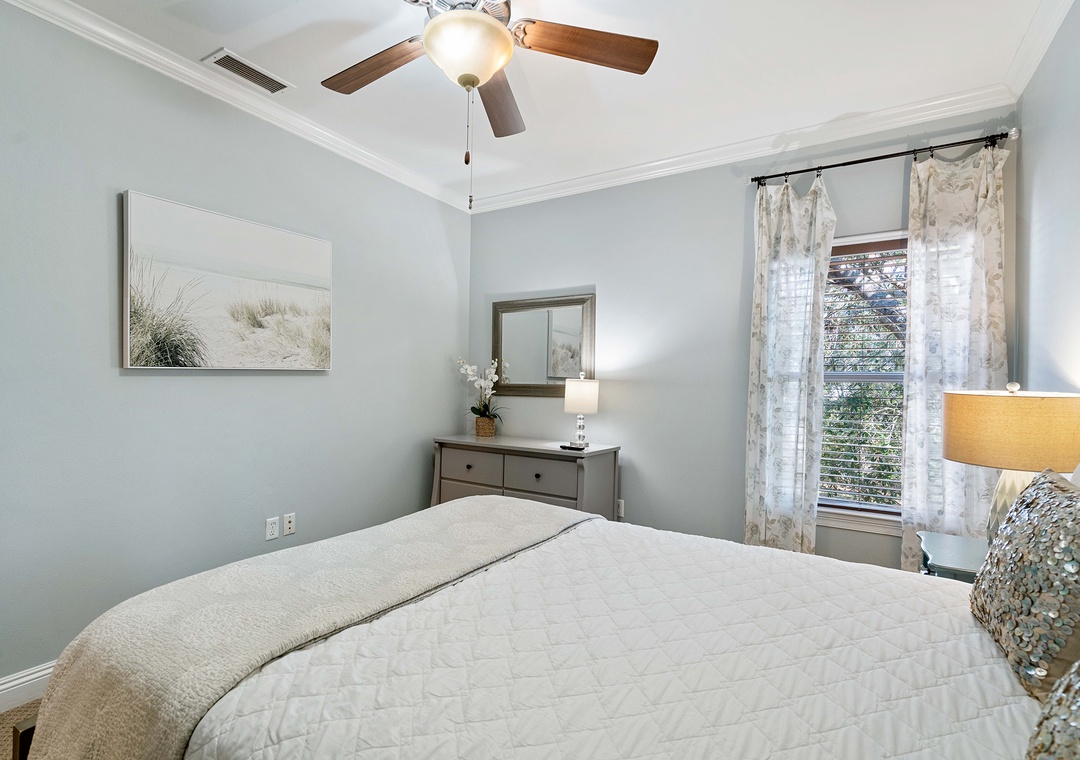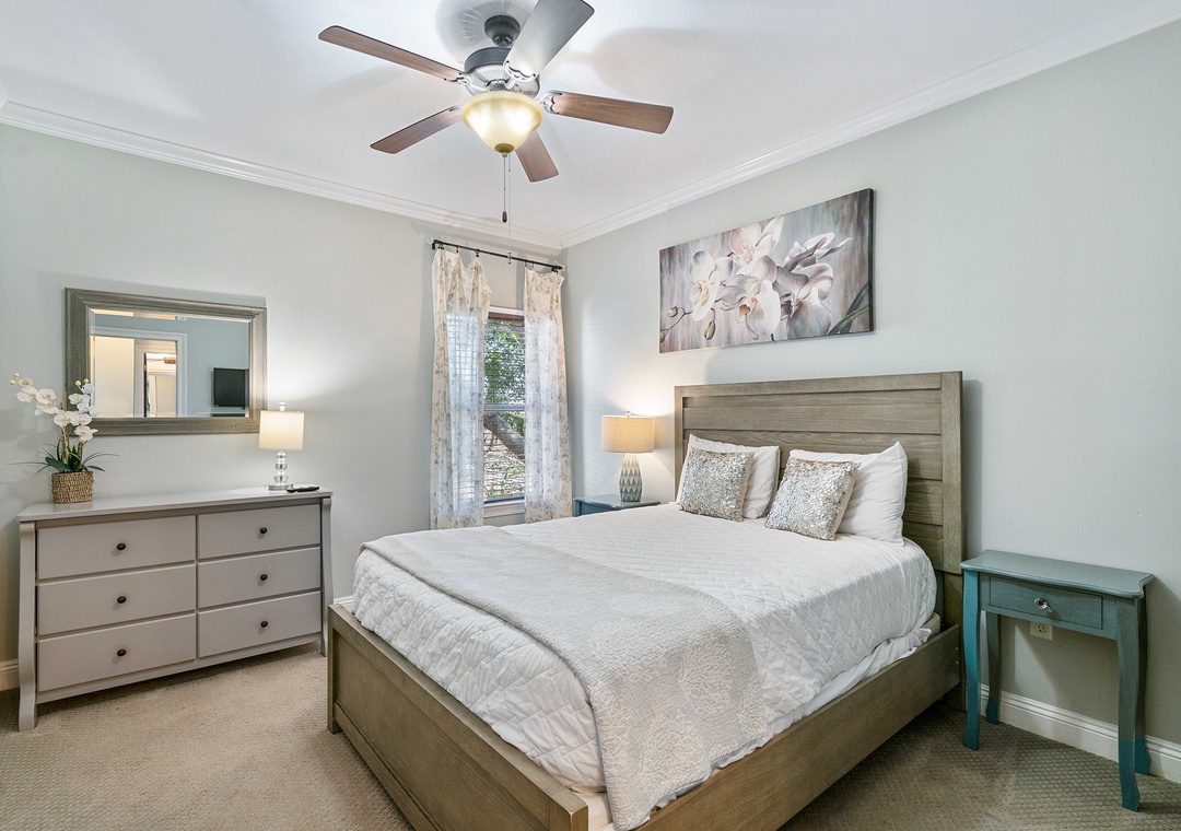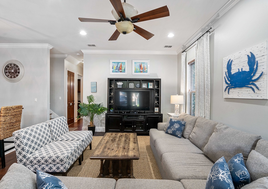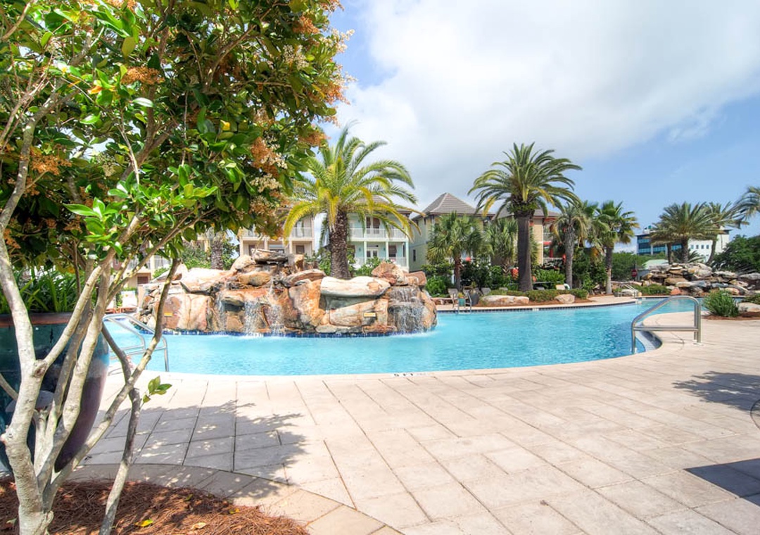 Villages of Crystal Beach is an exclusive, gated community only a few blocks from the beautiful blue waters and white sandy beaches of Destin. You can make the walk on foot or hop on the free seasonal trolley service (Memorial Day through Labor Day): they will even pick you up at the house and drop you off right at the beach! The pool area at Villages of Crystal Beach is a vacation must! The lagoon style zero entry pool is 30,000 square feet of gorgeous, sparkling clear water. There is a spa, tropical landscaping, and plenty of seating areas. It also has surround sound, a flat screen TV, and a grilling area to help you relax and unwind.