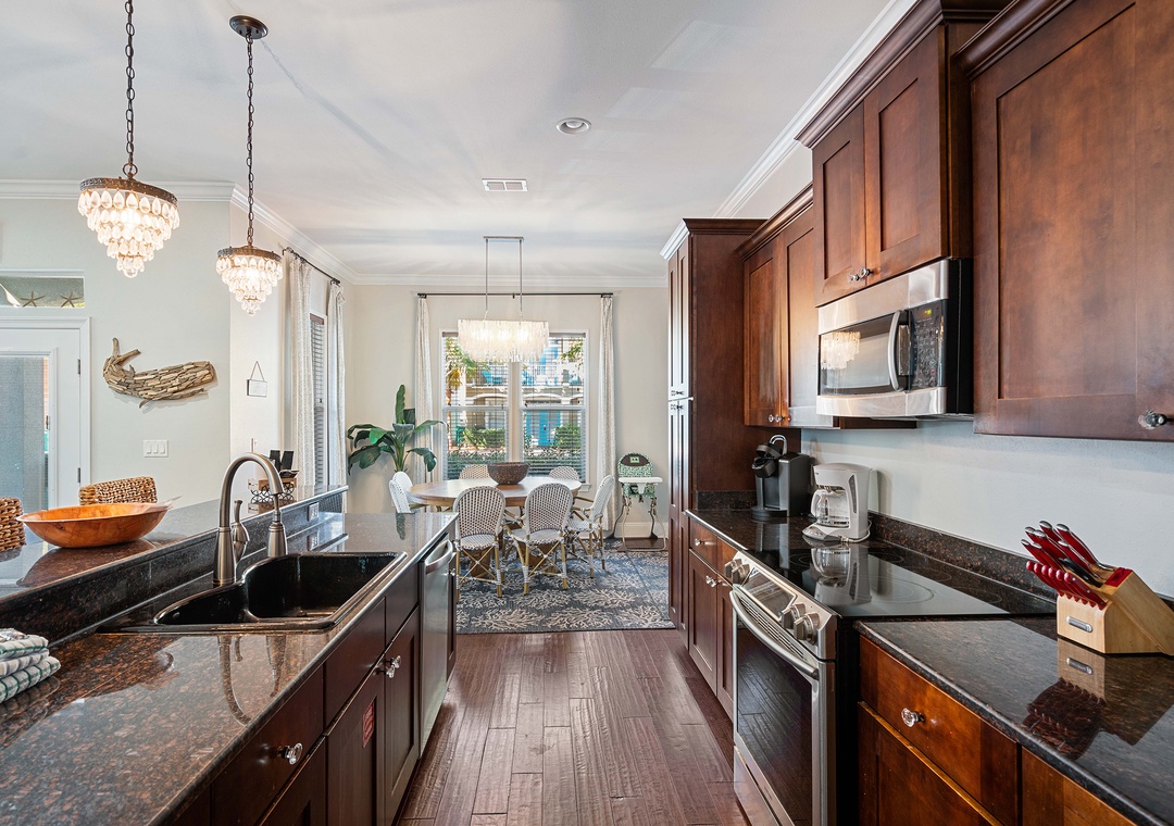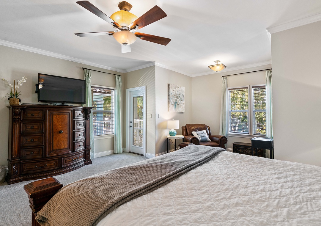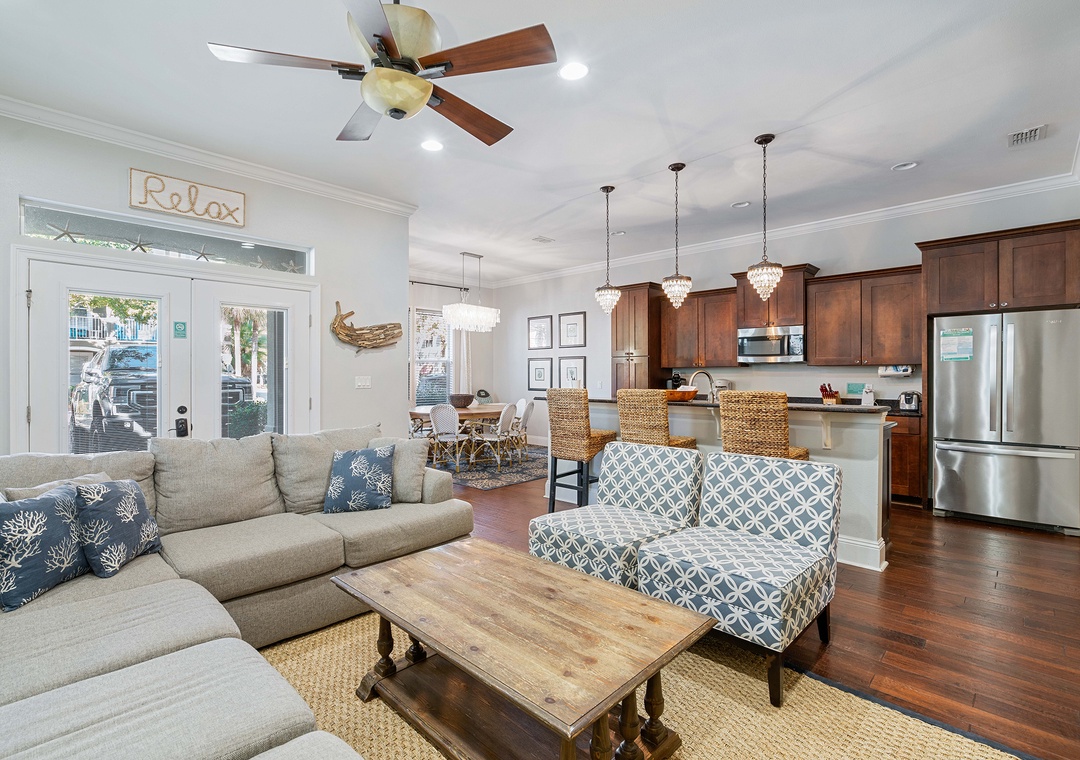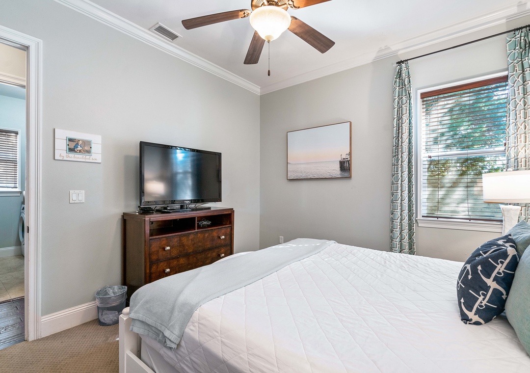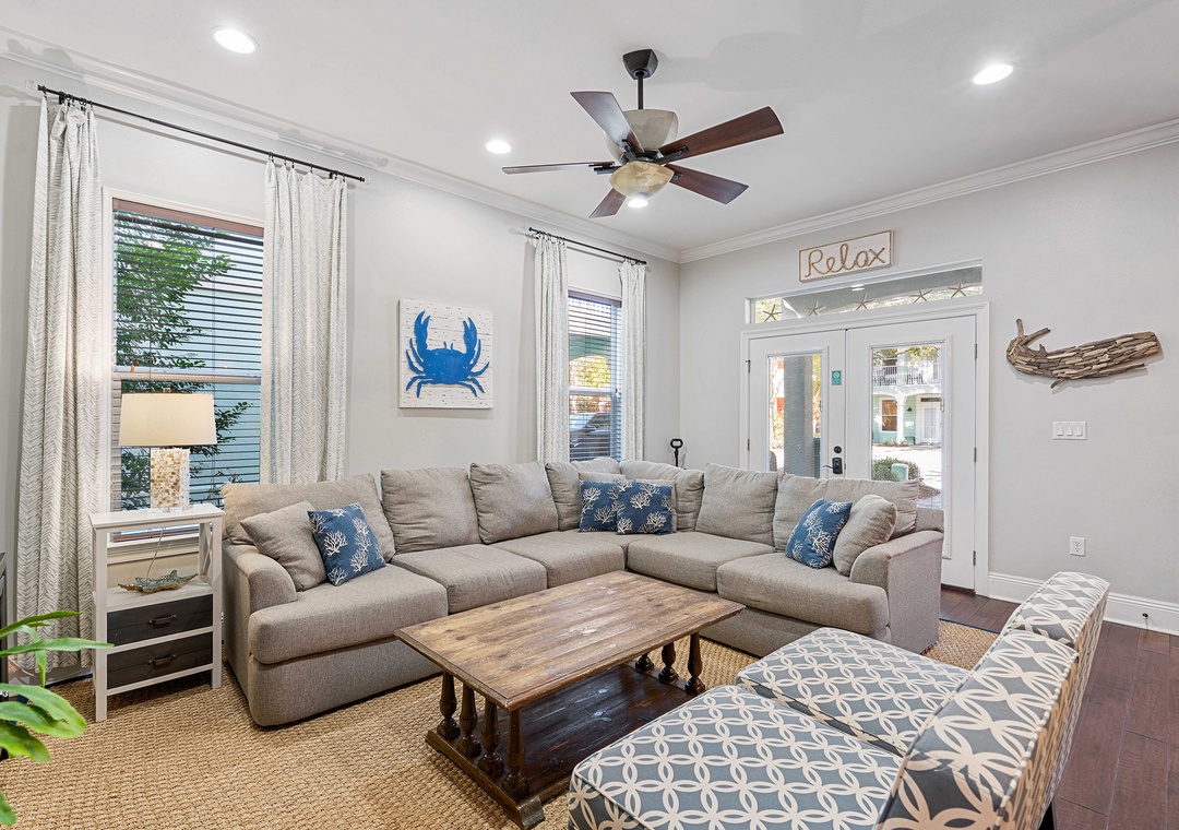 Villages of Crystal Beach is an exclusive, gated community only a few blocks from the beautiful blue waters and white sandy beaches of Destin. You can make the walk on foot or hop on the free seasonal trolley service (Memorial Day through Labor Day): they will even pick you up at the house and drop you off right at the beach! The pool area at Villages of Crystal Beach is a vacation must! The lagoon style zero entry pool is 30,000 square feet of gorgeous, sparkling clear water. There is a spa, tropical landscaping, and plenty of seating areas. It also has surround sound, a flat screen TV, and a grilling area to help you relax and unwind.