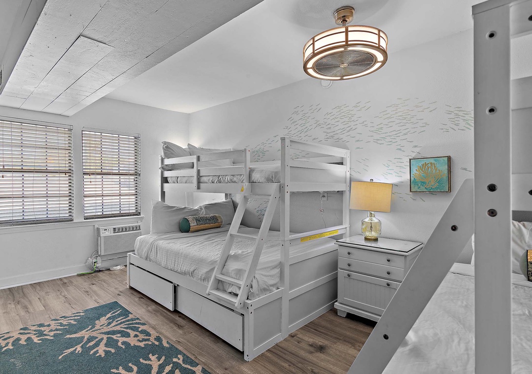 Great location. The beach access is only available thru the condo which is challenging. Very comfortable beds. Beach access only thru rental. Bathrooms with tubs only available in bedrooms. The bunk bed room gets hot only has window unit air. The air conditioner is right on top of the lower bunk bed.- Reviewed On: 6/2/2024