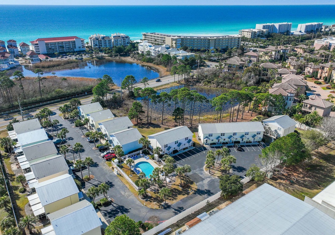 Summer Lake Townhomes in Miramar Beach, Florida, is a relaxed, low-density townhome community nestled around a peaceful freshwater lake and just a short walk from the sugar-white sands of the Gulf of Mexico, combining serene water views with prime coastal convenience. The community offers a sparkling outdoor pool, free parking, and easy access to multiple nearby public beach access points, restaurants, shopping, and entertainment, including the Silver Sands Premium Outlets and local dining options, all within minutes of Scenic Gulf Drive. Units in Summer Lake typically feature open, two-level floor plans with fully equipped kitchens, living areas that open to private patios or screened porches, and upstairs bedrooms, making them ideal for families or groups seeking comfortable vacation living near the beach. With its desirable location, community pool, and walk-to-beach appeal, Summer Lake provides an inviting and convenient base for enjoying everything Miramar Beach has to offer.