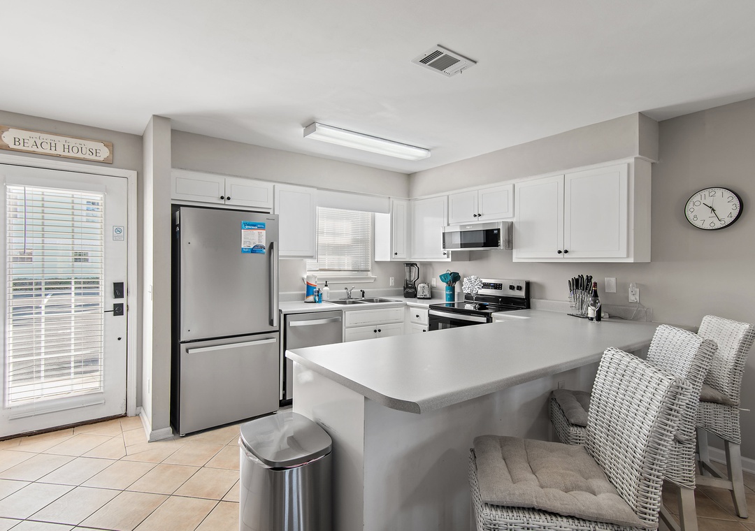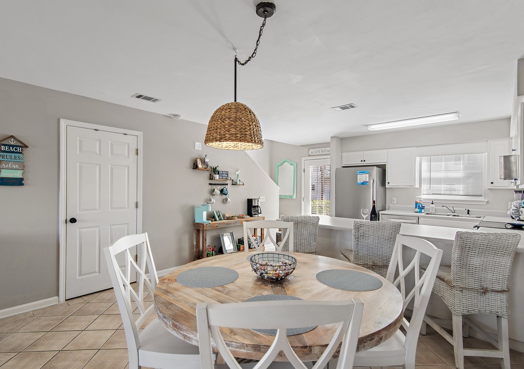 Welcome to Summer Lake 6, a beautiful, snowbird-friendly townhouse designed for comfort and relaxation. This spacious retreat features an open-concept main living area with seating for everyone, including three barstools at the kitchen counter and a dining table with six chairs. Step outside to enjoy back patio on both the first and second floors, along with a covered, second-floor balcony facing west that overlooks the lake and offers stunning sunset views. The fully equipped kitchen makes it easy to prepare meals or enjoy your morning coffee on the private patio. Ideally located within walking distance of the Gulf of Mexico’s soft white sands and emerald waters. Upstairs, the home offers a peaceful sleeping arrangement with a master bedroom featuring a king bed and a guest bedroom also furnished with a king bed, providing plenty of space to unwind after a perfect beach day. Come start lasting memories at Summer Lake 6.