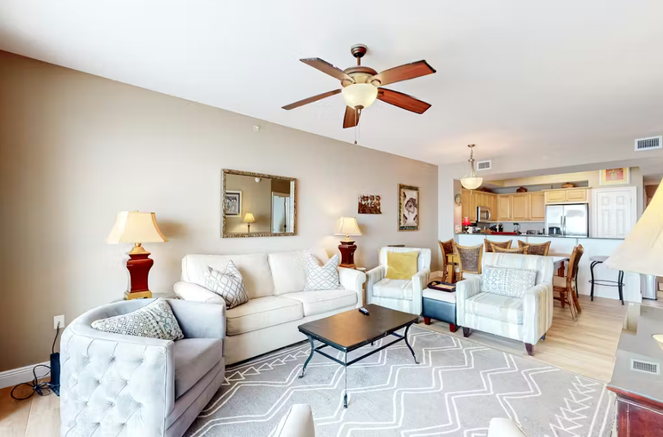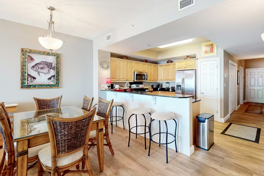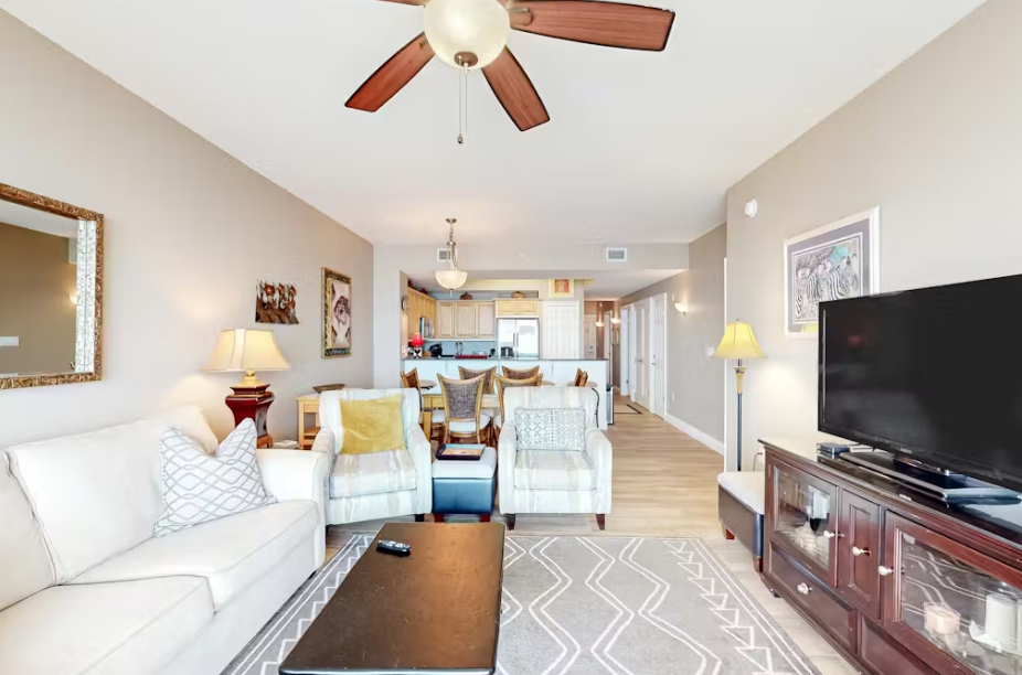 Welcome to Summer Place #303, a beautiful three-bedroom, three-bath Gulf-front condo just steps from the sugar-white sands of Fort Walton Beach. Located on the third floor, this inviting getaway offers stunning views of the Gulf and the pool, best enjoyed from your private, furnished balcony with a fresh cup of morning coffee. Inside, you’ll find a well-equipped full kitchen featuring stainless steel appliances, a breakfast bar, and everything you need to prepare your favorite meals. Gather around the large dining table for family dinners or game nights, then unwind in the comfortable living area with a queen sleeper sofa for flexible sleeping arrangements and TV for relaxing evenings. The spacious primary suite features a king bed, the first guest bedroom offers a king bed, and the second guest bedroom includes a queen bed, providing plenty of space for everyone. All bedroom attach to a full bathroom. Guests can also take advantage of the on-site fitness center to keep up with their routine while on vacation. Come experience coastal comfort and see why the fun never stops at Summer Place #303!