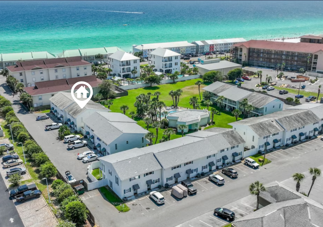 It is a little hard to find since it is set behind another bulding. You do have 2 parking spaces available as long as someone else does not park in your spots. It was okay for us as we only had one vehicle there at a time. The pool is right outside the back door which is great. The beach may be only 700 yards away but the access to the public beach is farther than that. The beach is beautiful white sand and is not full of shells so easy to walk on barefoot. Overall a very nice place to visit and this place is very well located to the beach. You will enjoy your stay here.- Reviewed On: 3/31/2024