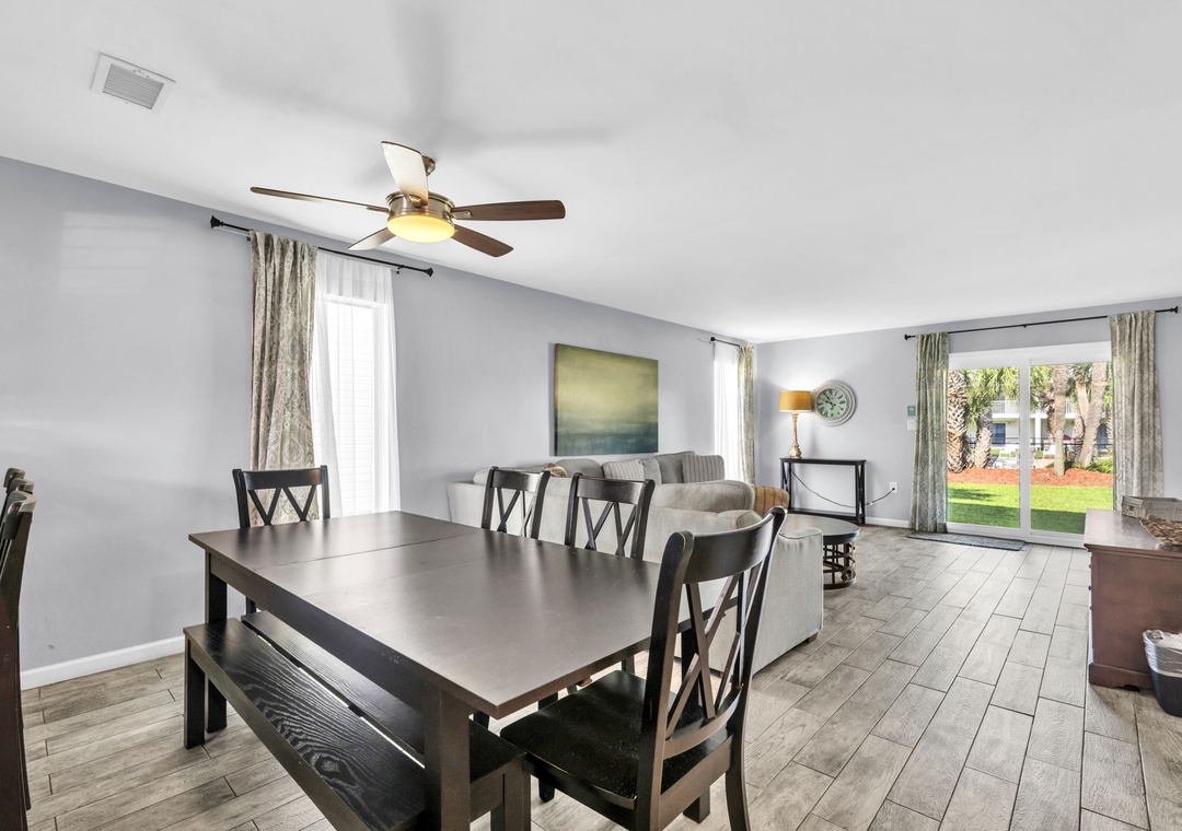Escape to Blue Pearl at Summerhouse #6, just a short walk to the sugar-white sands of Miramar Beach! This charming 2BR/2.5BA townhome features a fully equipped kitchen with stainless steel appliances and stone countertops, an open living and dining area, and lots of natural light from the corner windows. Upstairs, you will find the master bedroom with a king bed, ensuite bath, and a private balcony with gorgeous views of the pool. There's also a guest bedroom with two full beds, along with a queen sleeper sofa in the living room, allowing for sleep accommodations for up to 8 guests. With a community pool, easy beach access, and a ground-floor patio, Blue Pearl at Summerhouse #6, is perfect for your next family beach adventure!