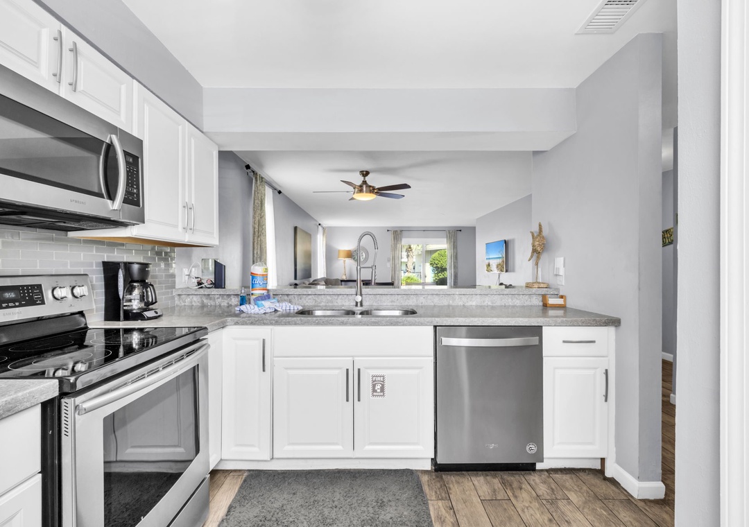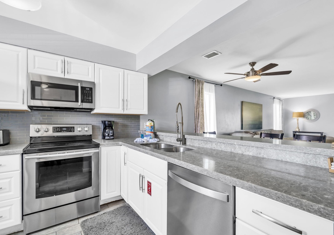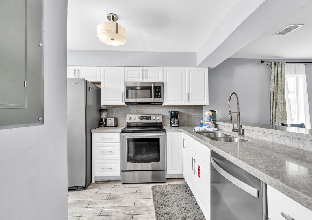 * Corner Unit with Stainless Steel Appliances and Stone Countertops