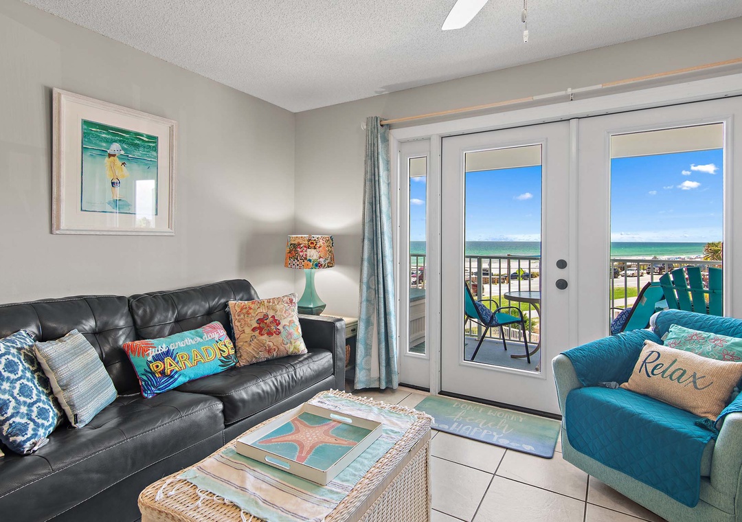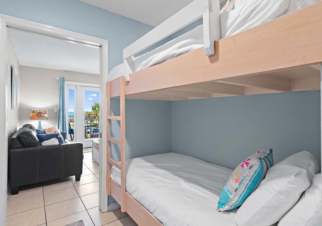 Summerspell 303 is a one-bedroom/one-bath condo across the street from the gorgeous beach. This charming condo offers gulf front views without the gulf front prices! With a King in the bedroom, twin over twin hallway bunks, and a queen sleeper sofa, this condo can sleep 6 guests. Open up your french doors in the mornings and enjoy coffee on your own private balcony as you take in the spectacular views. Summerspell amenities include a seasonally heated pool, outdoor jacuzzi, BBQ grilling area, and on-site laundry. Come find your new favorite family vacation destination at Summerspell 303!