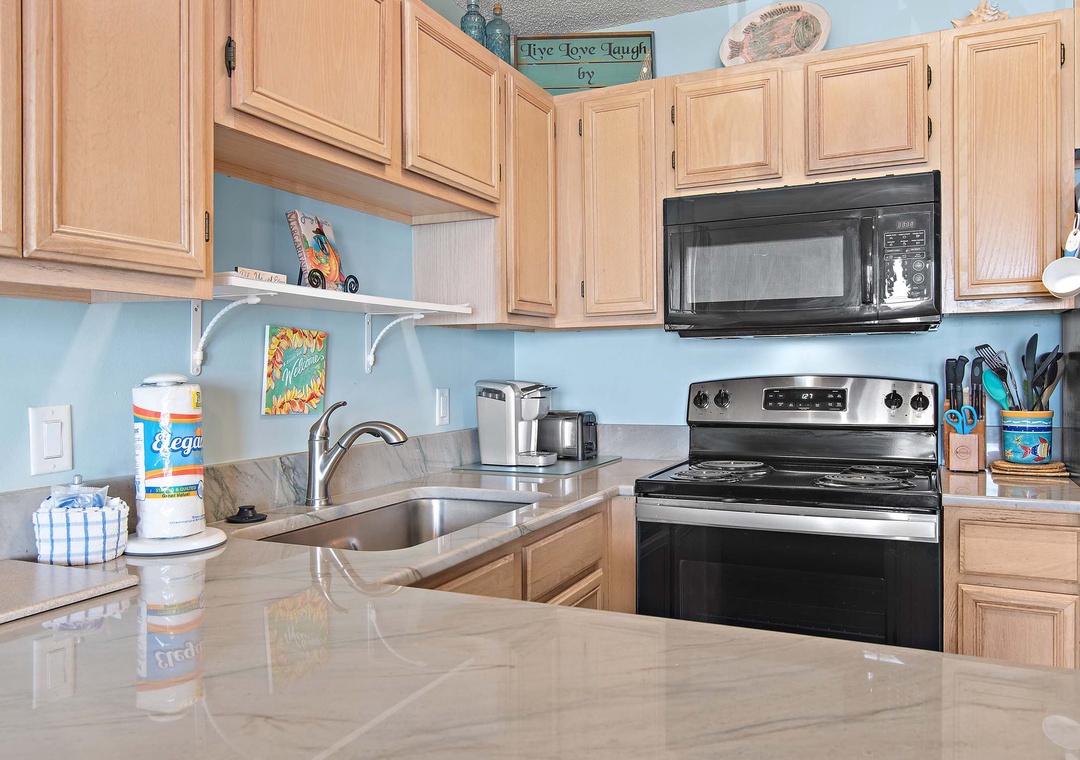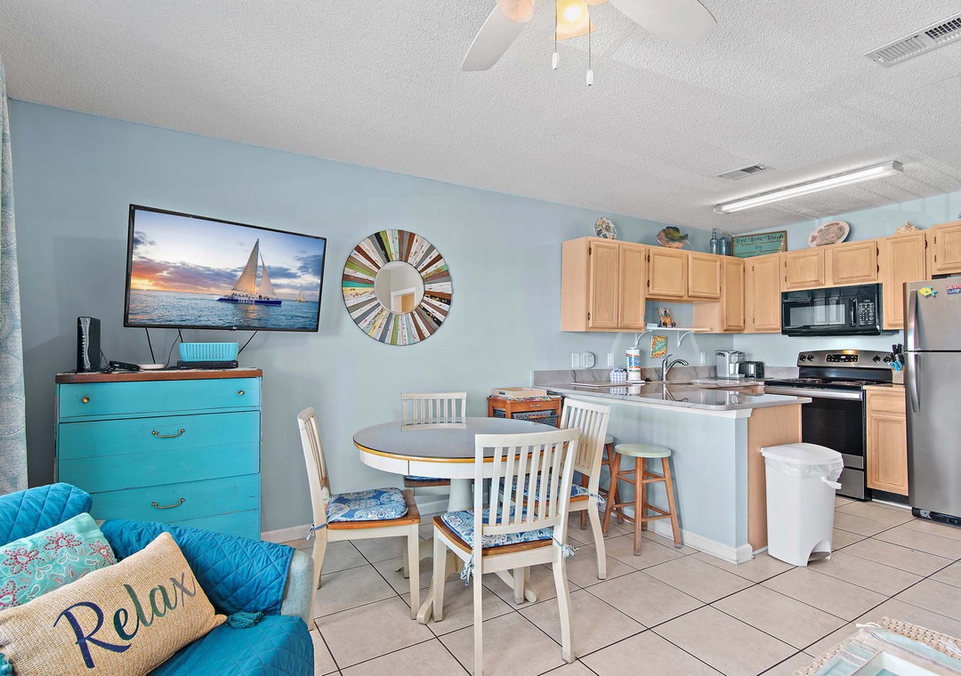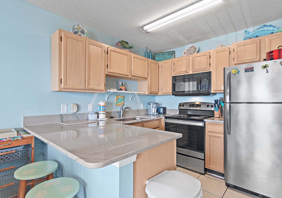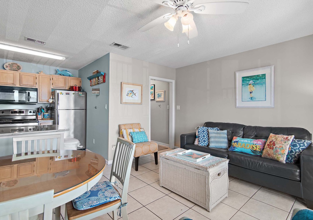 Condo was clean and had plenty of dishes, pots/pans etc. They even provided some beach towels so we didn’t have to use the ones we brought. Great if you don’t want to be right in the middle of the strip but a very short walk to beach access. This condo is listed for up to 6 people . In my opinion that would be way too crowded. The hot tub was out of service during our stay. Overall we had a great experience and would stay here again. Only thing I didn’t really like was our parking permit had our unit number on it . I think that could potentially be a safety concern.- Reviewed On: 8/22/2022