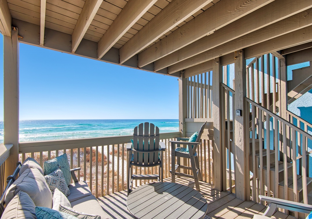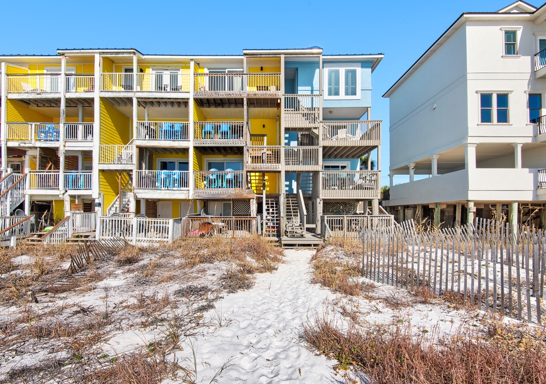 Property was as advertised! More than enough room for the six of us who went. Only issue is that it would not be very conducive to anyone who had trouble navigating stairs, because there were a lot of them. Easy walking distance to a restaurant (Whales Tale), gas station across the street, and a couple of souvenir shops with all the tacky crap you'd want from a vacation in the panhandle! Grocery store, liquor store, plenty of shopping, restaurants, and fast food were just a couple of miles away. Prepare for a 30-40 minute drive to and from the airport, BTW. There were some aesthetic blemishes on the outside and the carpet up the stairs is starting to look a little rough, but nothing that bothered me. Stove has elements, like from the 80's, so that was interesting. But they get hot all the same. Also had a microwave drawer, which until I saw it, didn't realize was even a thing. Oh, ice from ice maker was gross, but we just got a bag across the street and it was all good. Loved walking out to the beach and being just a few meters away anytime I needed a fresh drink or to go to the bathroom. Could even comfortably sit on the deck and watch my kids (teenagers) in the ocean, knowing that it wouldn't take much time at all to get down if I needed to.- Reviewed On: 3/9/2020