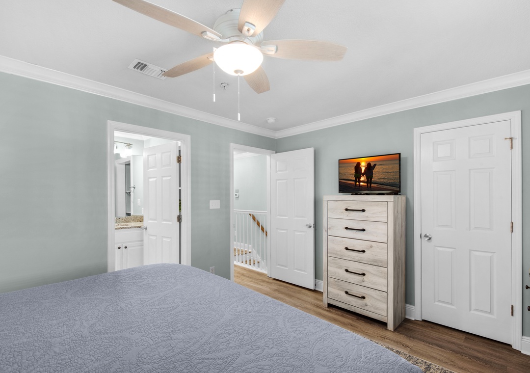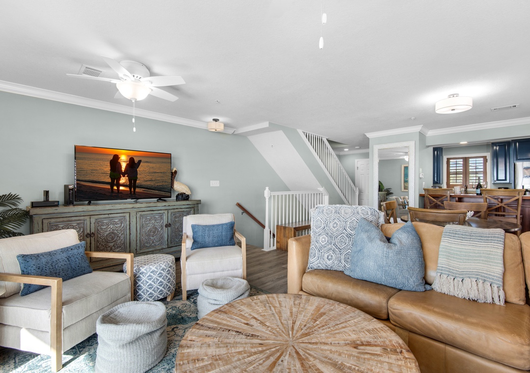 We had 10 people aging from age 10 to 45. Let me start by saying that overall we had an amazing vacation. The home was clean and nice and the location was perfection. We had a major plumbing issue (city line was culprit) Which put us with a horrible smell for part of a day until it was shut off and left us without water for more than a day. I will say that RealJoy was easily accessible. They Came out quickly when we reported the leak, and although it was not ideal we were given a 2nd room just a few minutes away so we could have water while repairs were being made. Tommy with Real Joy was a rock star and kept us in the loop with everything. The owners also were fair in helping soften the blow of this inconveniences. I say All of this not to let you know we had an issue but to let you know that it was handled very well and you can feel confident booking with them! Pros: 1. LOCATION!!! Obviously the beautiful water/beach was our reason for booking but we really enjoyed walking to the Whale’s Tail for dinner (and drinks on the beach), the food was excellent all 4 times. The Circle K across the street was super convenient for snacks. We also frequented Bad Ass coffee, Dairy Queen and Paradise found (all within walking distance.) 2. Very nice townhome overall. Could use a few paint touchups and new carpet on the stairs (but it’s a rental on the beach so that is expected) Couch is very comfortable! Tv’s in all rooms! There is plenty of cups, bowls, silverware. 3. Hot water for all 10 people showering one after the other! Cons: 1. Oven was a hassle to use. We used it once and even though there was no smoke the heat set off the smoke detector near it EVERYTIME we opened the door. ( it was on 350 degrees) there was no vent and the detector is close ( I did let them know so hopefully that will be rectified) 2. Not anyone’s fault but beware of other guests using your trash cans . I would return to the location in a heartbeat!- Reviewed On: 6/22/2021