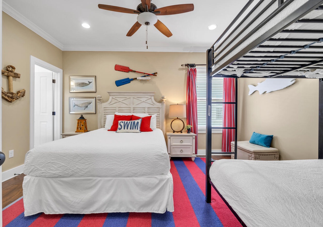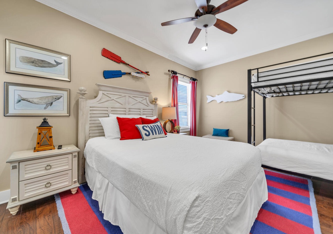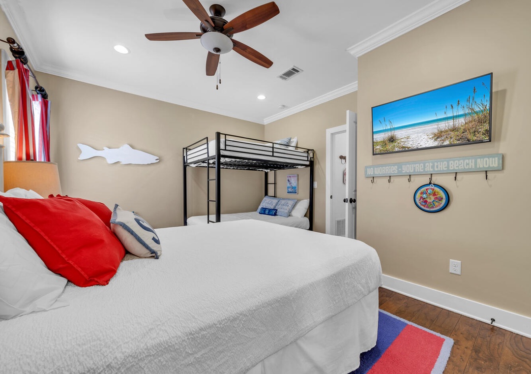 Guest Bedroom: Queen Bed + Full-over-Full Bunkbed