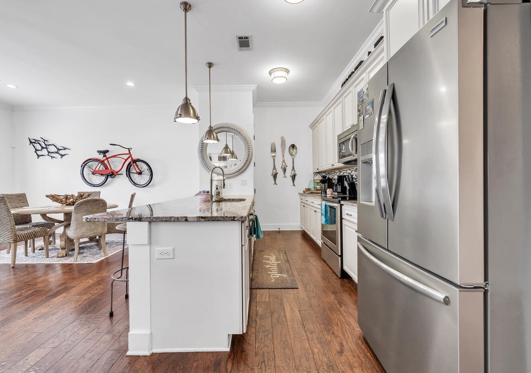 This was just a short little stroll to the the beach and so close to all the little shops with food or ice cream. Yet it was off to itself enough you didn’t feel like your were on top of everyone else. We honestly couldn’t say enough nice things about it. It was very clean, looked clean and neat very nicely decorated and just pleasant all the way around. The kitchen was very well stocked and there were plenty of towels and pillows in each bathroom and bedroom. There was a bike for use and knee boards and beach chairs and a beach blanket. Just very well thought out and supplied for a nice stay. Was very pleased made for a super nice stay!- Reviewed On: 4/16/2022