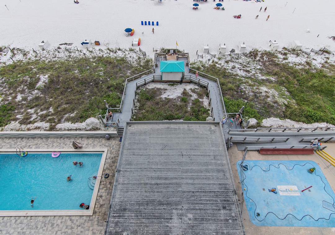 SunDestin is a vacation rental complex conveniently located in the heart of Destin, less than half a mile from Big Kahuna's waterpark. It is unmatched in terms of facilities and guest services: check out the two pools (outdoor and heated indoor), Splash pad for kids, exercise room, steam room, sauna, whirlpool, massage therapy, onsite restaurant, tiki bar, and gift shop, with a front desk staffed 24/7. There are also coin-operated laundry facilities on each floor.